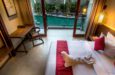 *Deluks soba sa bazenom (,,Deluxe room with plunge pool”): 35m2 – locirana na prvom spratu, prostrana soba sa bazenom, besplatan WiFi, LCD TV, klima, mini bar, sef, ketler, prostor za sedenje, papuče, bade mantil, balkon ili terasa, fen