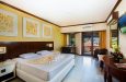 *Deluks soba: 36-40 m2 – pogled na vrt, kupatilo, dnevna soba, tuš, fen za kosu, klima, sef, TV sa kablovskim programima, telefon, WiFi besplatno, mini frižider, ketler, namešteni balkon ili terasa