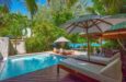 Beachfront Spa Cottage (oko 150m²) – Opremljene kao Deluxe Beach Cottage, direktno na moru sa privatnim ležaljkama i wellness paviljonom u otvorenom kupatilu.