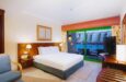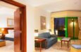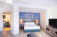 Sadržaj soba: Hotelski kompleks ima ukupno 401 smeštajnu jedinicu, koje su raspoređene u glavnoj zgradi i vilama, koje deli put. Glavna zgrada je u delu kompleksa prema moru, dok se vile nalaze preko puta glavne zgrade (deli ih ulica). U glavnom delu kompleksa nalaze se standardne i premium sobe (renovirane), a u vilama standardne sobe i family apartmani sa jednom ili dve spavaće sobe. Sve sobe imaju balkon ili terasu sa panoramskim pogledom na okolne vrtove, velike bazene ili more, sef, mini bar, pristup internetu (uz doplatu), kupatilo sa kadom ili tuš kabinom i sve sobe su klimatizovane. Takođe i pribor za pripremu čaja/kafe i pribor za peglanje. Mini-bar sa osveženjima dostupan je na zahtev i uz doplatu.