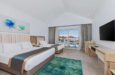 Sadržaj soba: Hotel ima 866 soba bungalovskog tipa. Svaka soba ima mini bar (svaki dan se dopunjuje flaširanom vodom), TV sa satelitskim kanalima, klima uređaj, ketler, sef, fen za kosu, terasu ili balkon. Standardne, kao i porodične sobe mogu imati pogled na bazen ili na baštu. Standardne sobe su površine oko 46m2, dok su porodične sobe iste površine, ali imaju dve sobe odvojene kliunim vratima. U svim sobama je zabranjeno pušenje.