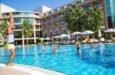 Hotelska ponuda: Bazeni na otvorenom i zatvorenom za decu i odrasle, vodeni tobogani, wellnes & spa centar (sauna, tursko kupatilo besplatno), amfiteatar, teren za odbojku, teren za košarku, teniski teren, mini fudbal, dečiji klub sa igralištem na otvorenom, mini disco, bogat animacioni program prilagođen po uzrastima u jutarnjim časovima – aerobik, pikado, boćanje, fudbal, košarka, zabavni šou program tokom večeri – karakoke, uživo muzika, tematske večeri, žurke na plaži. Glavni restoran, a la carte restoran, više barova u sklopu hotela, poslastičarnica. Dodatno su na raspolaganju usluge vešeraja, rent a car, doktor, sportovi na vodi, oprema i osvetljenje teniskih terena, masaže i ostali tretmani, fotograf, marker, bejbisiter, room service. Wi-Fi internet slabijeg protoka je dostupan besplatno.