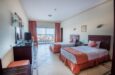Sadržaj soba: Hotel raspolaže sa 322 sobe,gde su standardne sobe površine oko 30 m² (max 2 odrasle + 2 dece ili 3 odrasle), sadrže francuski ležaj ili dva standardna ležaja, dodatni ležaj je sofa ili fotelja na rasklapanje. Ove sobe imaju bočni pogled na more dok Superior suites imaju direktan pogled na more. Porodične sobe imaju delimičan pogled na more i dve spavaće sobe odvojene vratima.
