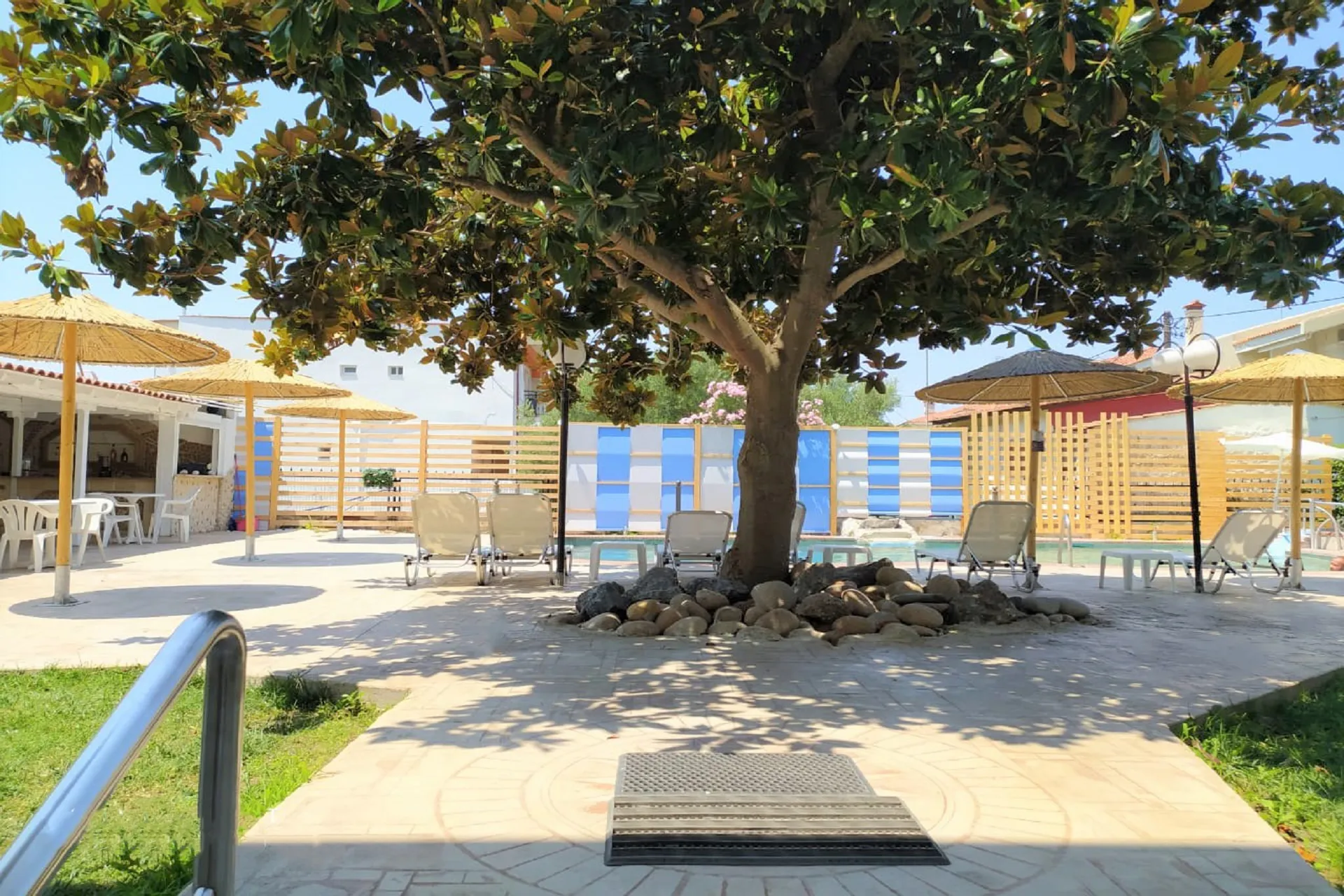 Sve sobe su studiji sa opremljenom kuhinjom i verandom ili balkonom. Hotel je udaljen samo 400 m od mora i 500 m od centra sela. Hotel je nedavno renoviran.