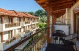 Pored elektronskih brava na ulazu u apartman, na raspolaganju Vam je dnevne usluge čišćenja, klima uređaj, moderan nameštaj, kupatilo sa tušem i utičnicom za brijač, fen za kosu i peškirima za bazen i plažu, ormar, TV sa ravnim ekranom sa filmskim i sportskim kanalima, trpezarijski sto sa potpuno opremljenom kuhinjom i frižiderom, privatna terasa sa tendom i veranda sa pogledom na dvorište. Zatim na raspolaganju je i spoljašnji đakuzi kao i sef za Vaše dragocenosti.