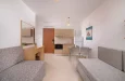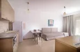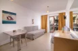 Apartman je površine oko 38 m2 i sastoji se od dve odvojene celine, u jednoj – dnevnoj sobi su dve odvojene sofe na razvlačenje i kauč na razvlačenje i jedne spavaće sobe sa bračnim krevetom. Svi imaju potpuno opremljenu kuhinju u dnevnom boravku, kupatilo sa tuš kabinom i balkon ili terasu. Raspored u dva odvojena prostora omogućava smeštaj do pet osoba (maksimalno četiri odrasle osobe), što ih čini idealnim izborom za parove, prijatelje ili porodice koje žele da provedu bezbrižan i prijatan odmor u Grčkoj.