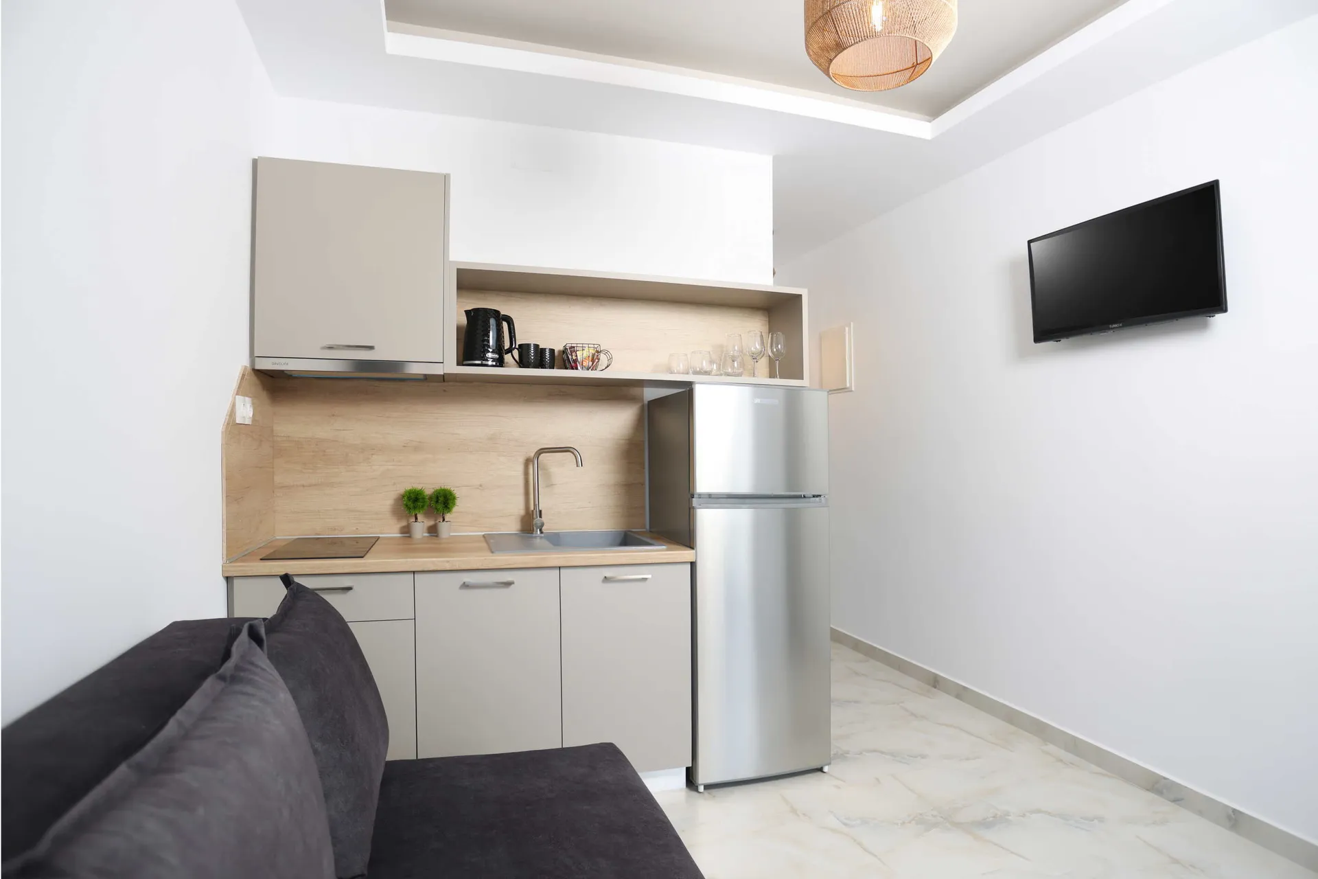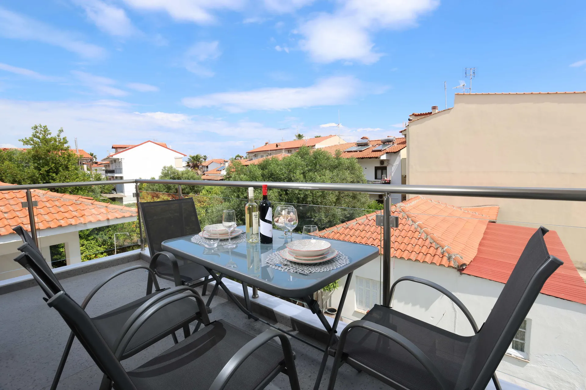 Moderni sadržaji: Svaki apartman sadrži klima uređaj, kuhinju, balkon sa pogledom na grad, sofu na razvlačenje, frižider, prostor za sedenje, besplatne toaletne potrepštine, tuš, TV, privatni ulaz, sofu, popločane podove i garderober.