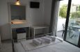 Sadržaj soba: Apartmani se sastoje od dve prostorije: kuhinjskog dela gde se nalaze dva standardna kreveta i spavaće sobe koja je opremljena francuskim krevetom ili sa dva standardna kreveta. Sve smeštajne jedinice su opremljene kuhinjom (mini električni šporet, frižider i posuđe bez tiganja), namenjenom za pripremu lakih obroka, kupatilom, klimom koja se doplaćuje, WiFi-em (slabog protoka), LCD TV-om, terasama sa garniturom za sedenje. Čišćenje je svakodnevno, dok je promena posteljine i peškira je na 5 dana.