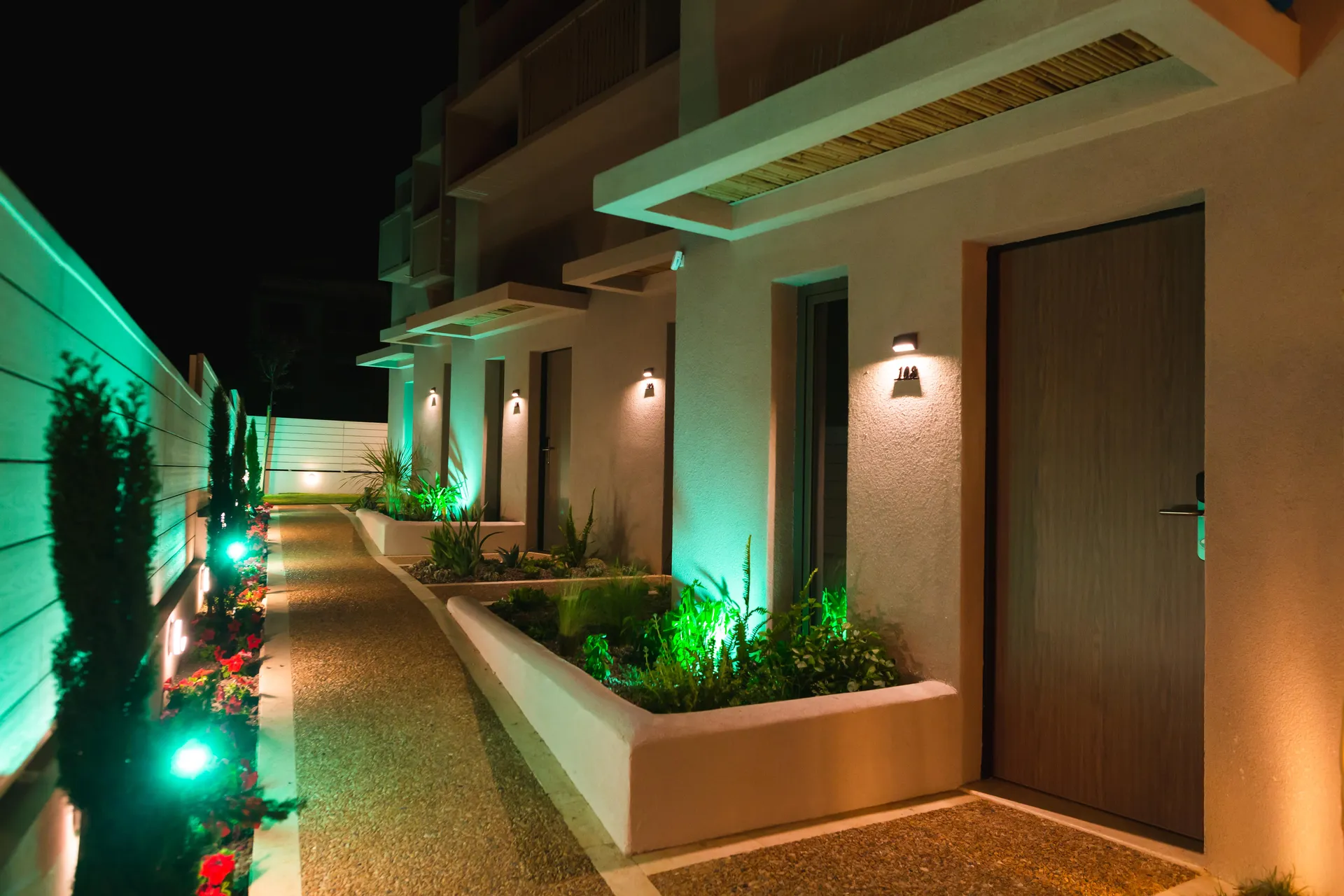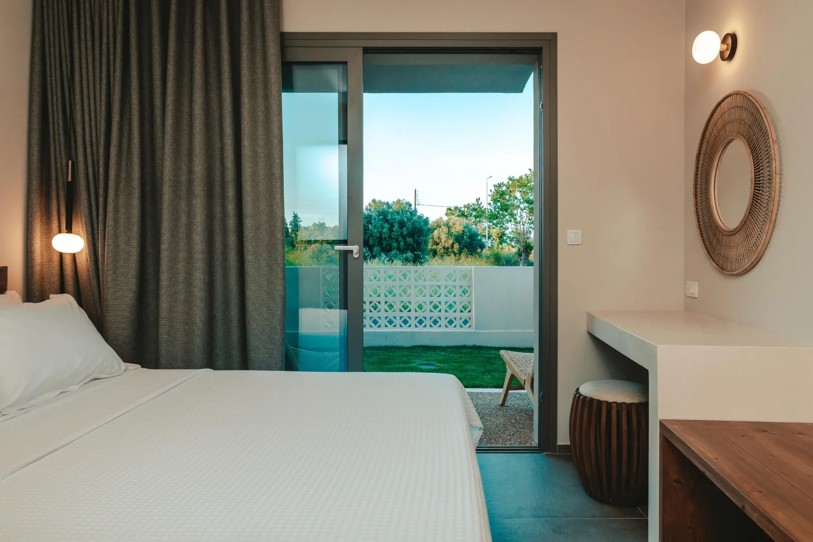 Kompleks se sastoji od soba i apartmana elegantno uređenih elegantnim nameštajem i nežnim nijansama peska. Sve jedinice imaju balkone sa pogledom na prelepo uređene bašte kompleksa.