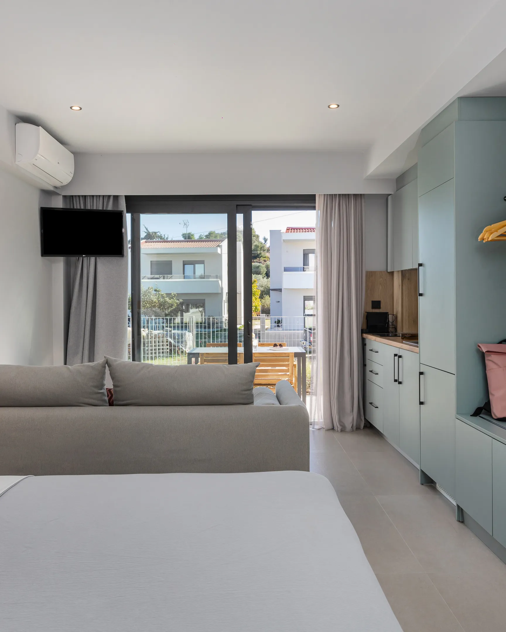 The 8 Suites se nalazi u Polihronu na Halkidikiju, potpuno novi kompleks koji se sastoji od udobnih soba sa apartmanima, okrenutih ka spolja, jednostavnih linija koje kombinuju udobnost i kontakt sa mediteranskom prirodom u prostranim vrtovima imanja. Smeštaj je udaljen samo 200 metara od obale i 500 metara od centra sela, na idealnom je mestu za uživanje u trenucima mira i opuštanja, sa sadržajima organizovanog sela na samo nekoliko koraka. Svaki apartman ima spavaći deo, jednu ili dve sobe u zavisnosti od vrste sobe, dnevnu sobu, potpuno opremljenu kuhinju, prostrano kupatilo, kao i drugo kupatilo ili toalet, u zavisnosti od vrste sobe. Svaka soba ima privatnu terasu u vrtu mediteranskog stila, sa pogledom na more i planine. Sve sobe imaju klima uređaj, televizore ravnog ekrana sa satelitskim kanalima, sef, aparat za kafu Nespreso, kuvalo za vodu, kuhinjsku opremu, fen za kosu i sopstvena kupatila. Superior sobe imaju privatne bazene. Besplatan bežični internet u celom kompleksu. Našim gostima je na raspolaganju privatni parking. U okolini ćete pronaći mnoge mogućnosti za plaže, organizovane i besplatne, kosmopolitske sela, širok spektar zabave, mogućnosti za hranu i piće, kao i turističke atrakcije.