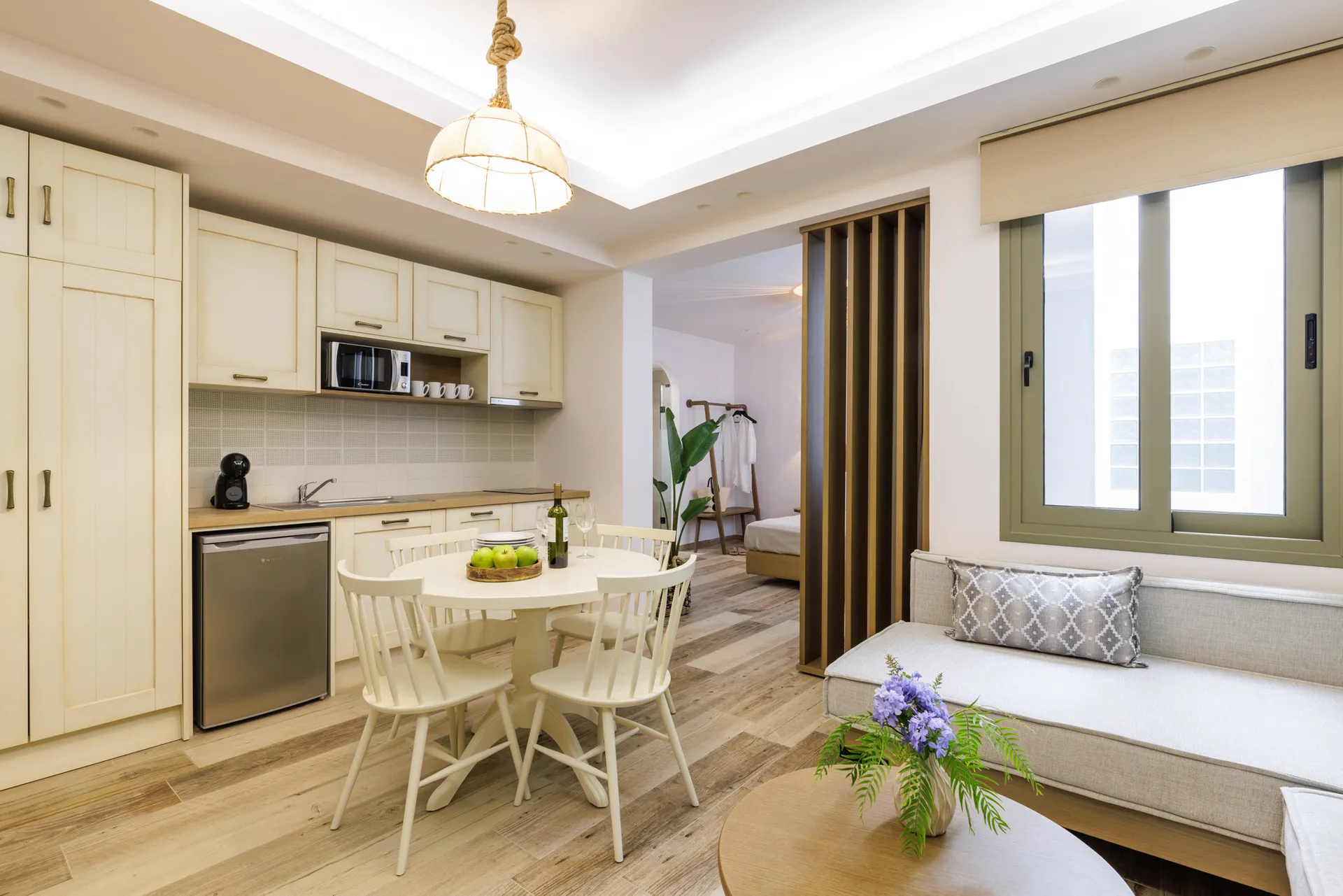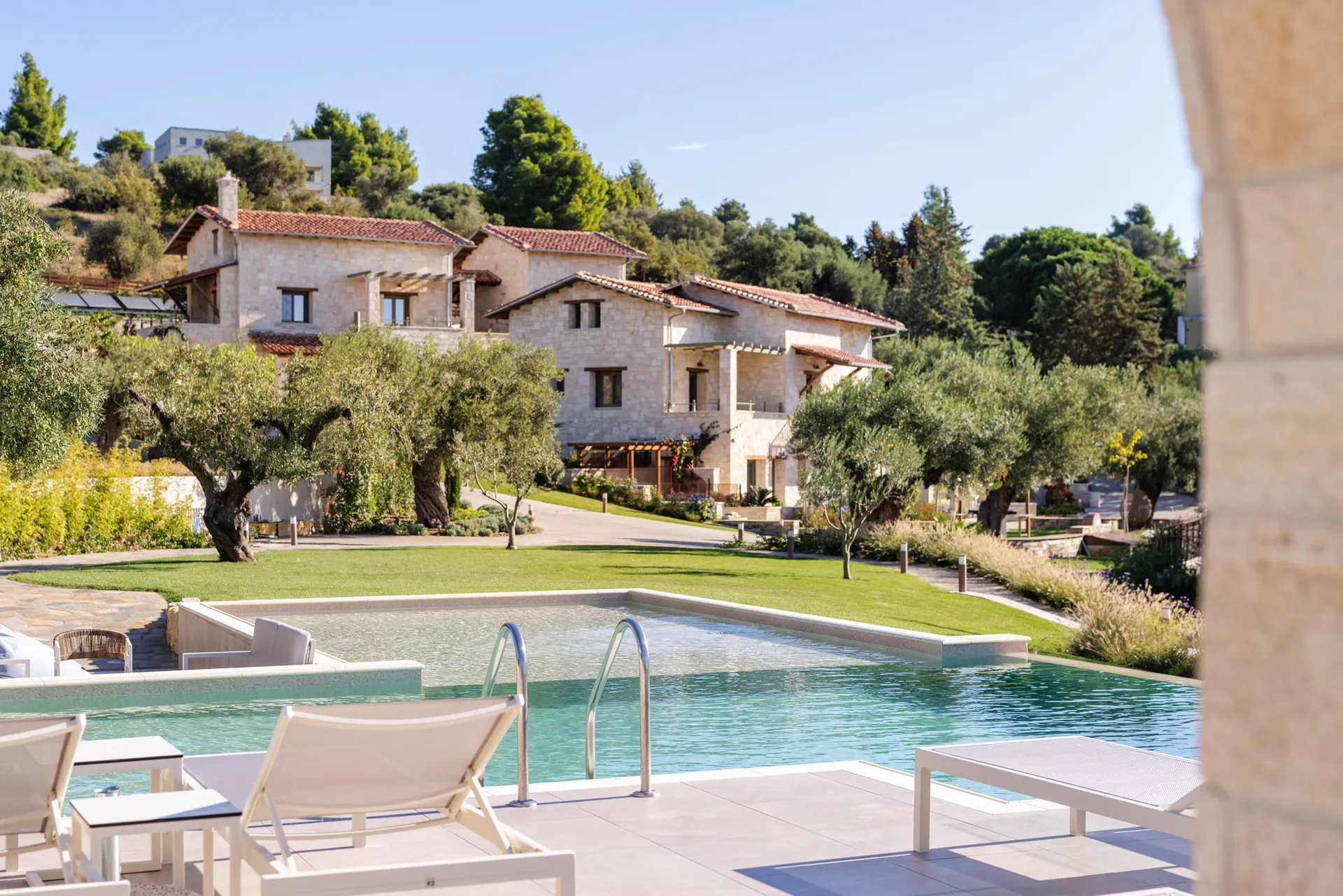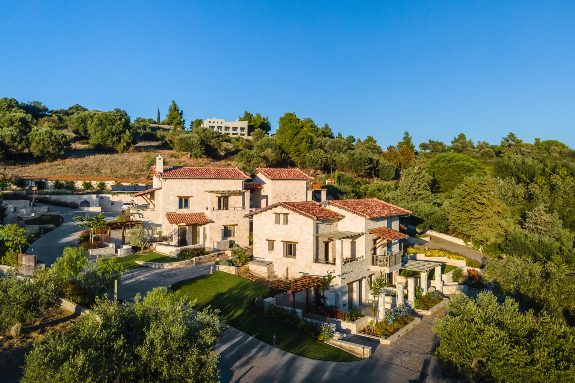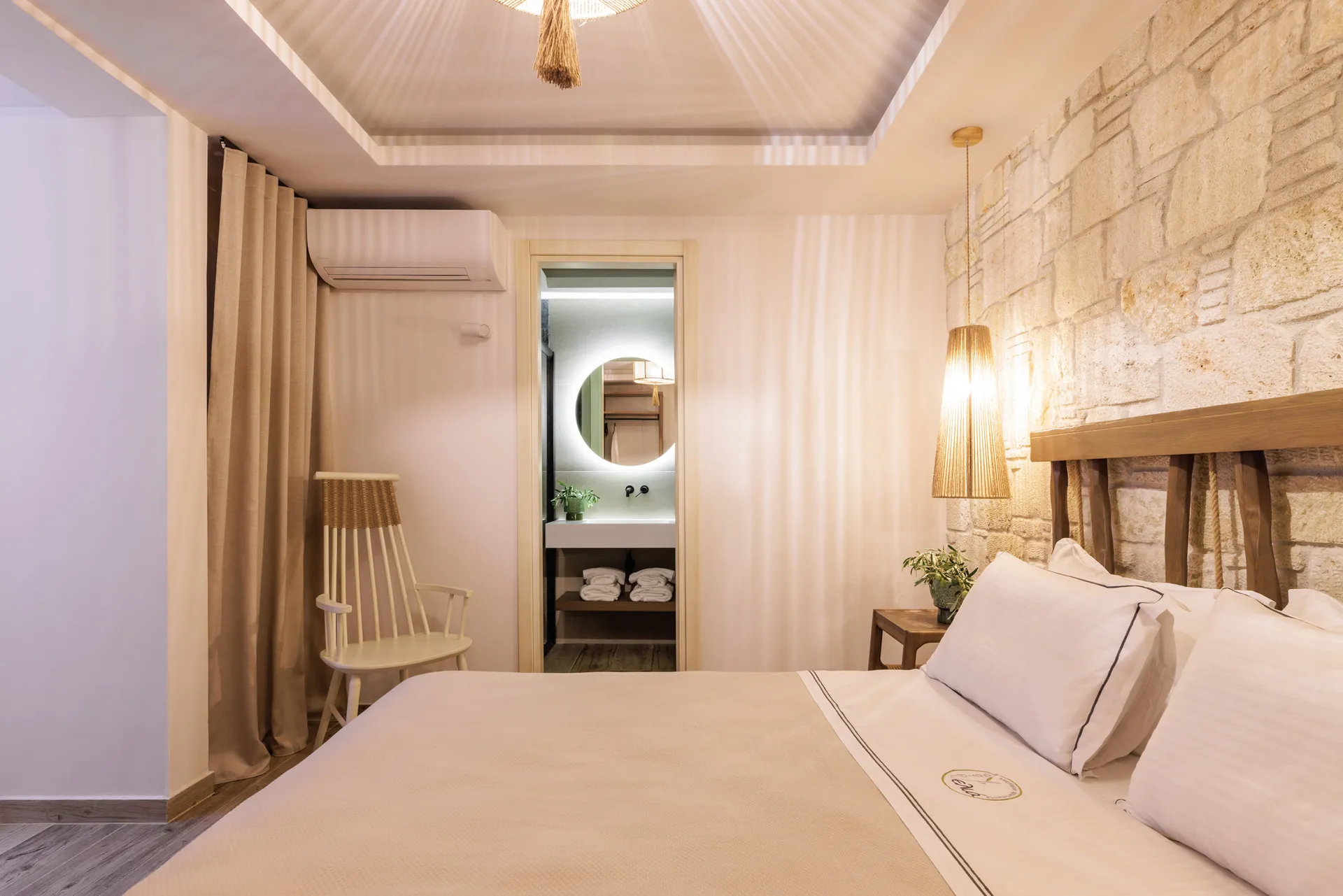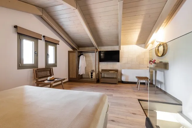 Sa drvetom i kamenom kao protagonistima u svojoj arhitektonskoj strukturi, apartmani, sa pažnjom na svakom detalju, savršeno se harmonizuju sa prirodnim pejzažom, stvarajući jedinstvenu kombinaciju odmora i podmlađivanja u nepretencioznom luksuzu jednostavnosti.