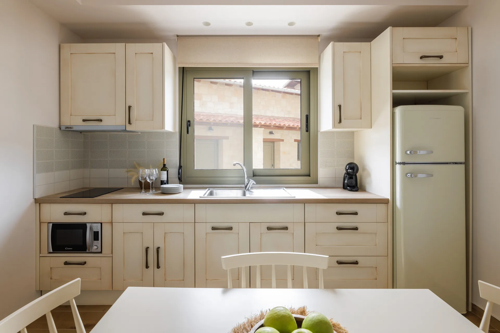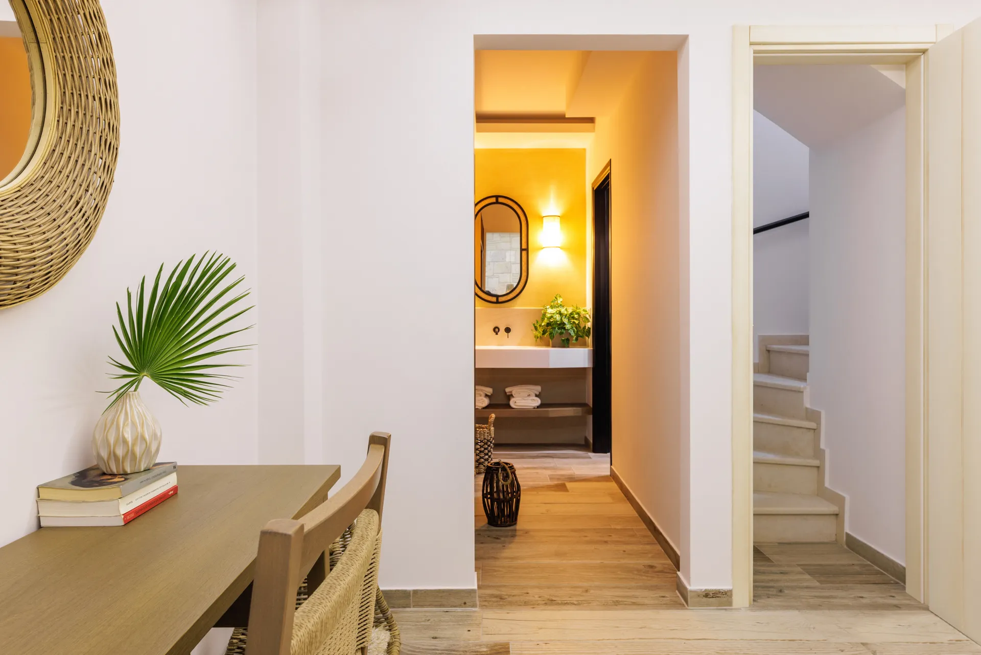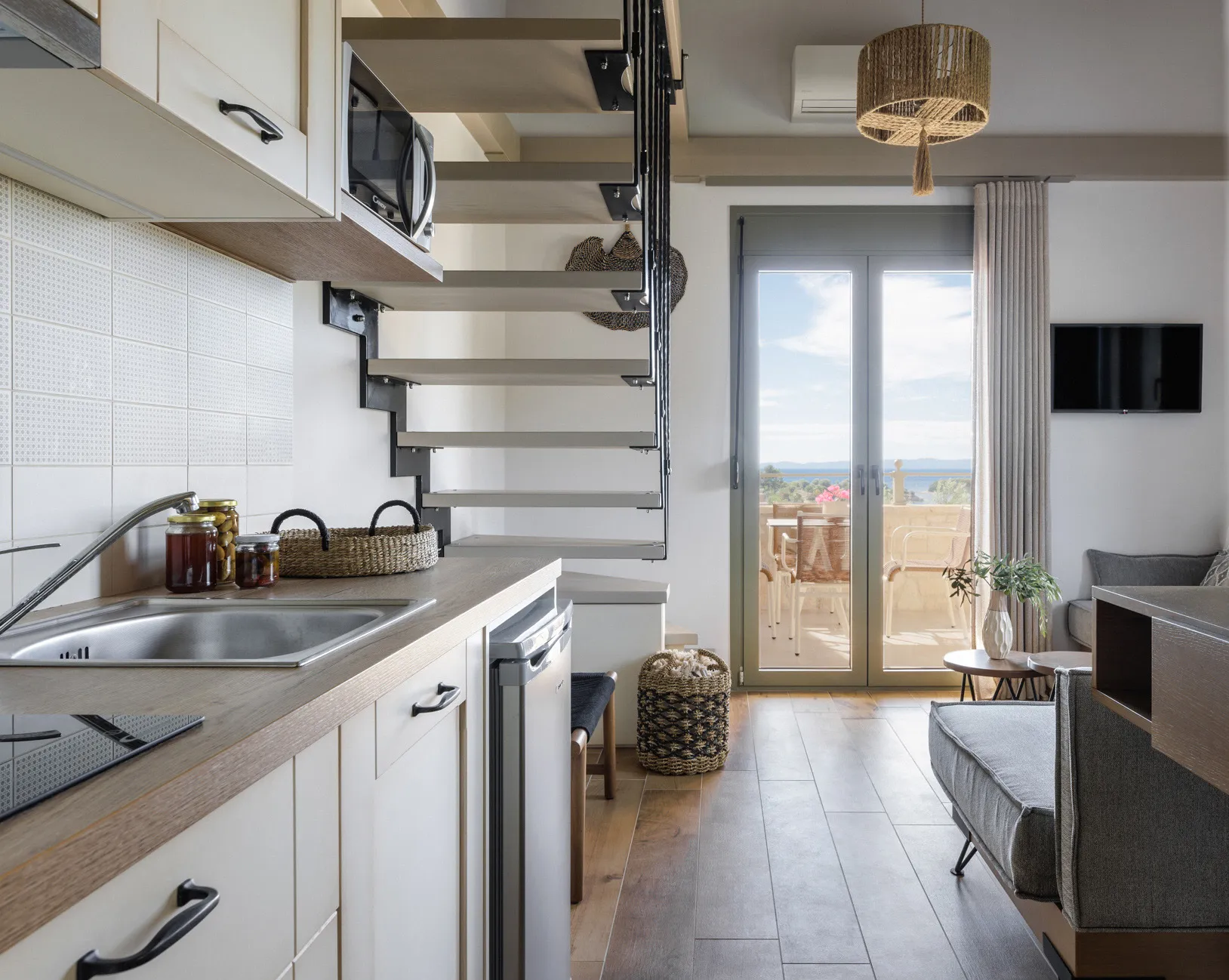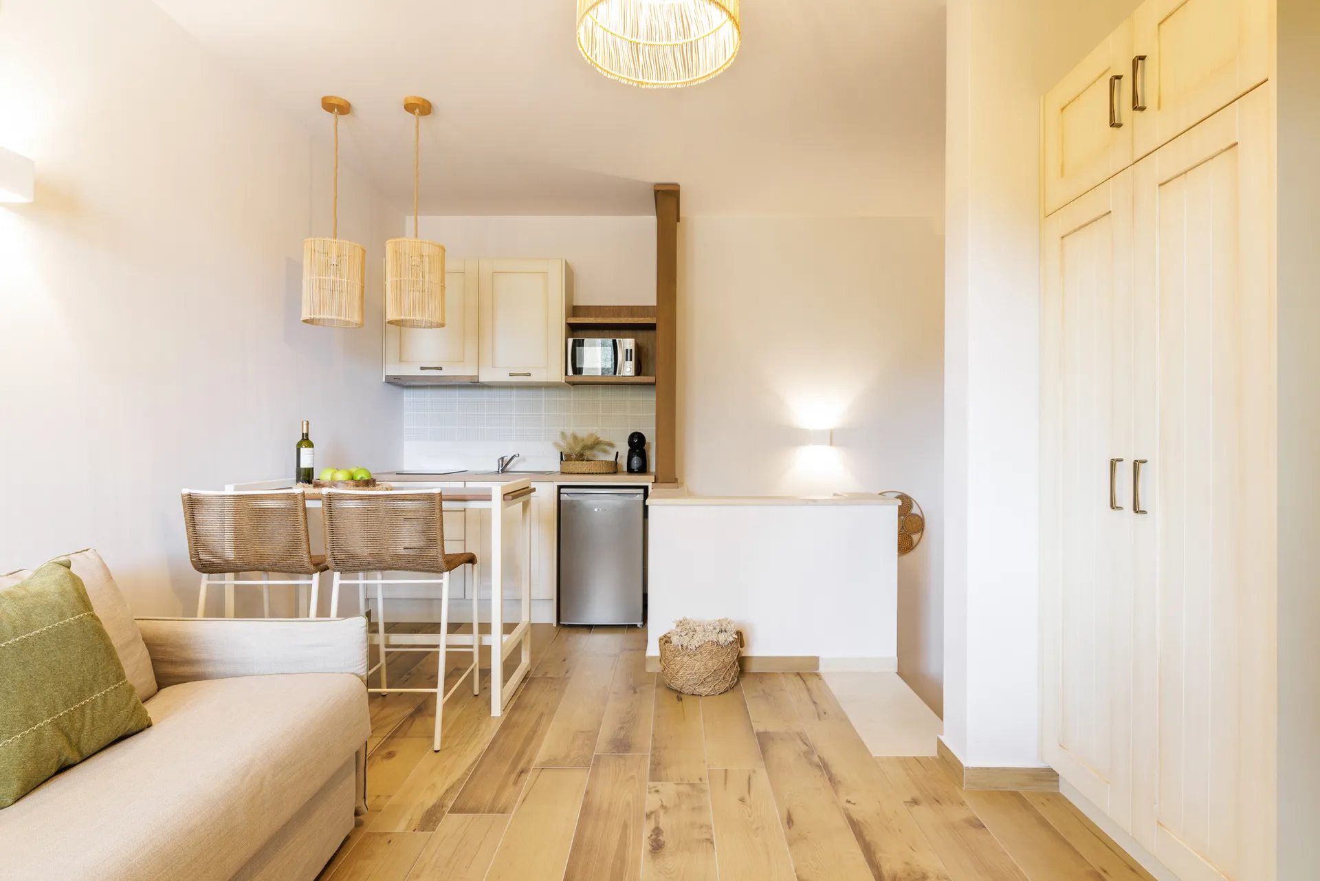 Sa drvetom i kamenom kao protagonistima u svojoj arhitektonskoj strukturi, apartmani, sa pažnjom na svakom detalju, savršeno se harmonizuju sa prirodnim pejzažom, stvarajući jedinstvenu kombinaciju odmora i podmlađivanja u nepretencioznom luksuzu jednostavnosti.