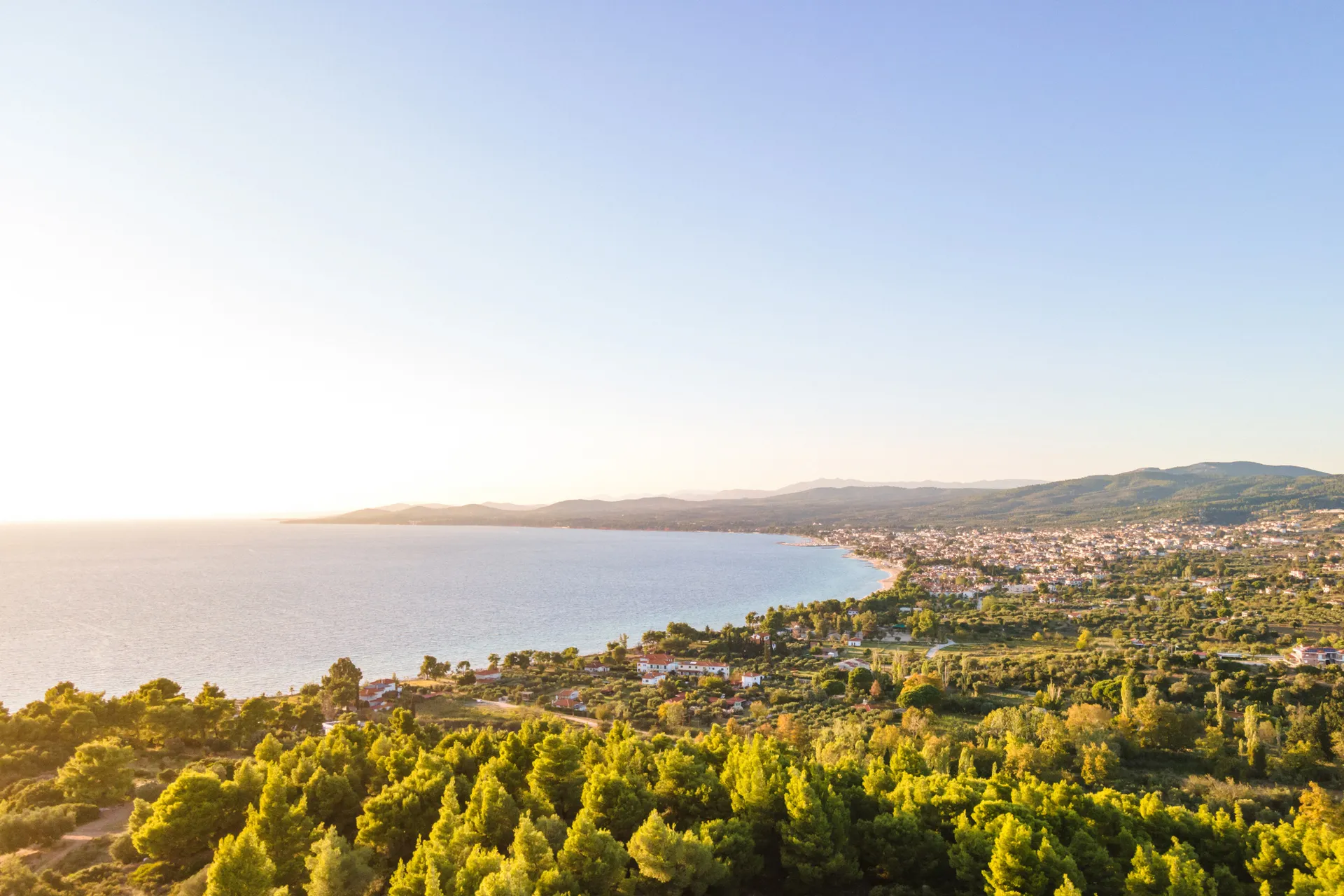 Stenovito karakteristično ostrvce područja Kastri kontroliše Toronski zaliv i zapadnu obalu Sitonije, dok se odmah preko puta u daljini mogu videti obronci planine Olimp.