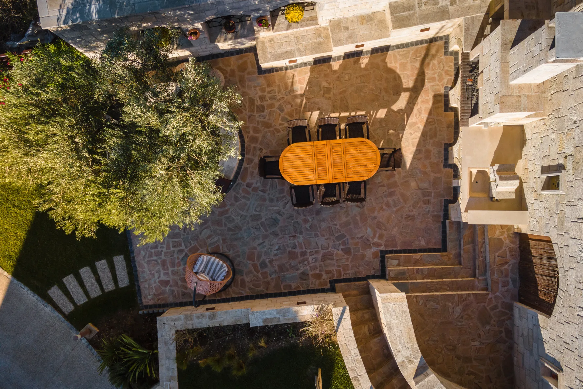Na drugom – donjem nivou, nalazi se prostrana spavaća soba sa kupatilom. Uređena veranda sa pogledom na bašte kompleksa i more pružiće vam apsolutni mir i učiniće odmor vaše porodice ili vašeg društva nezaboravnim.