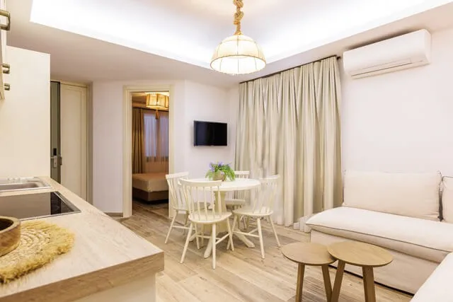 Ekonomik porodični apartman je idealan ekonomski izbor za porodice i grupe, koja može da primi do 5 gostiju. Sastoji se od otvorenog dnevnog boravka, trpezarije i kuhinje, kao i jedne spavaće sobe. Sa udobnim prostorima, lepo uređenim i pravilno opremljenim, imaju sve uslove za super odmor.