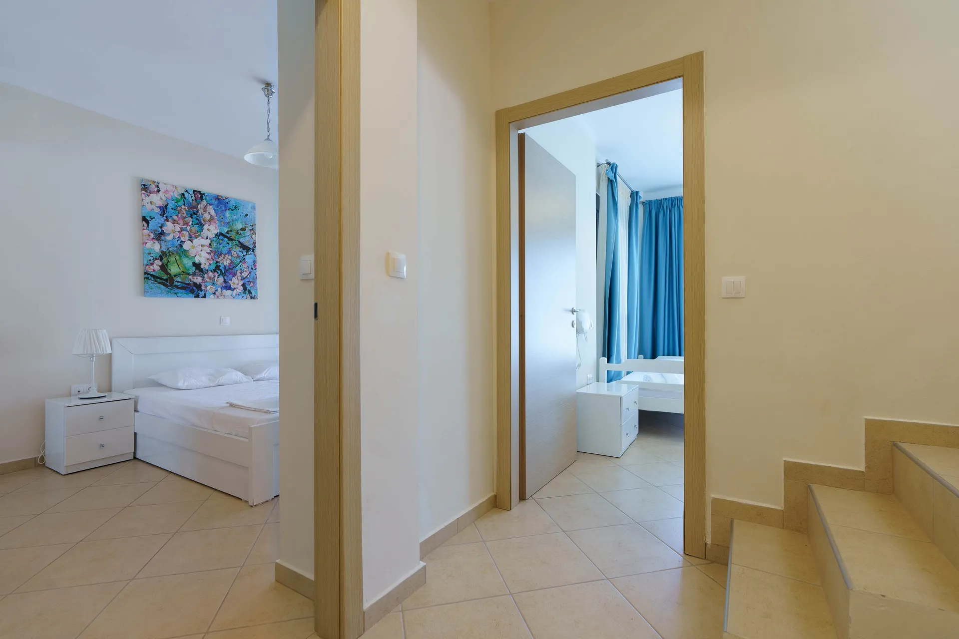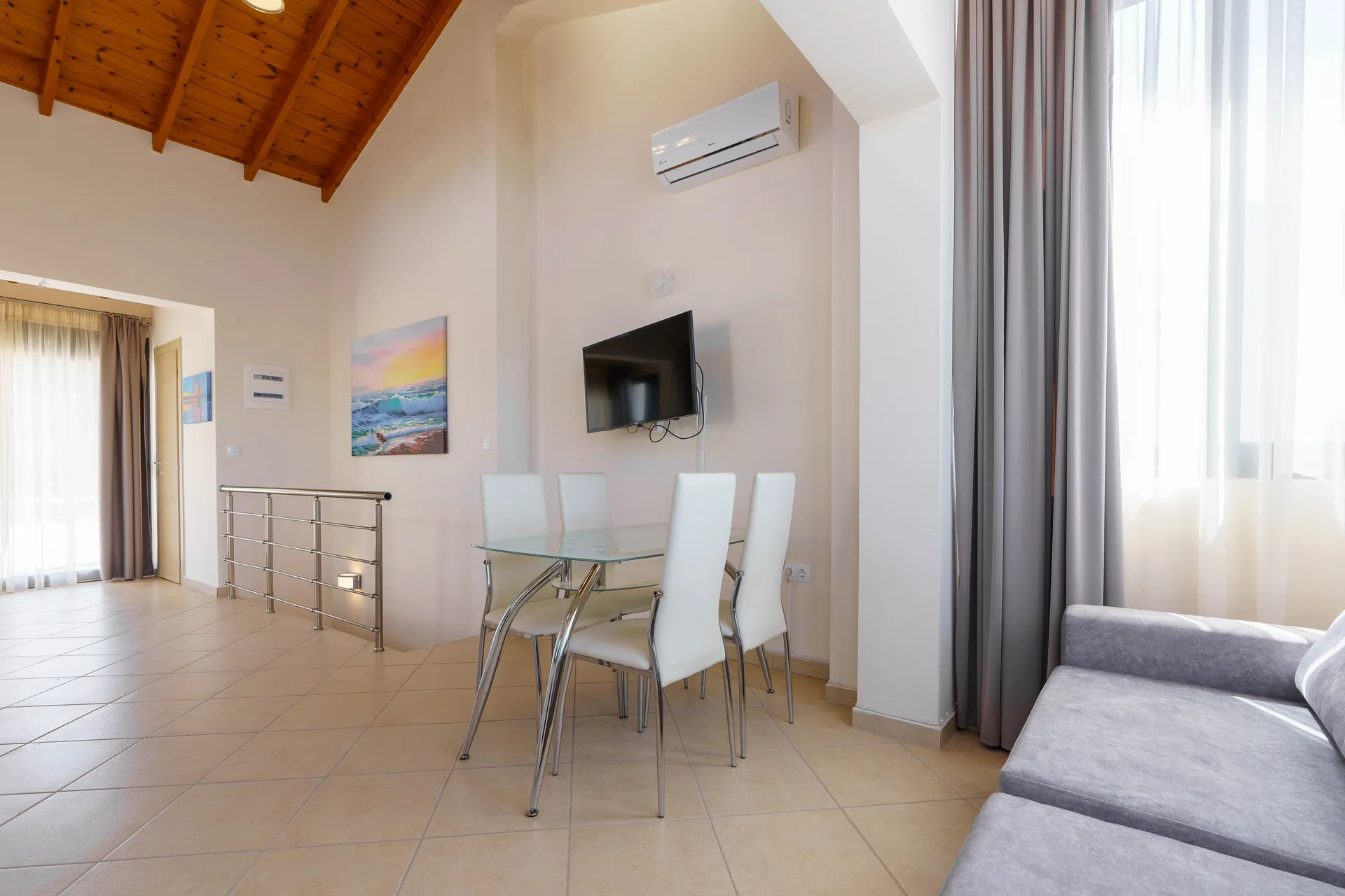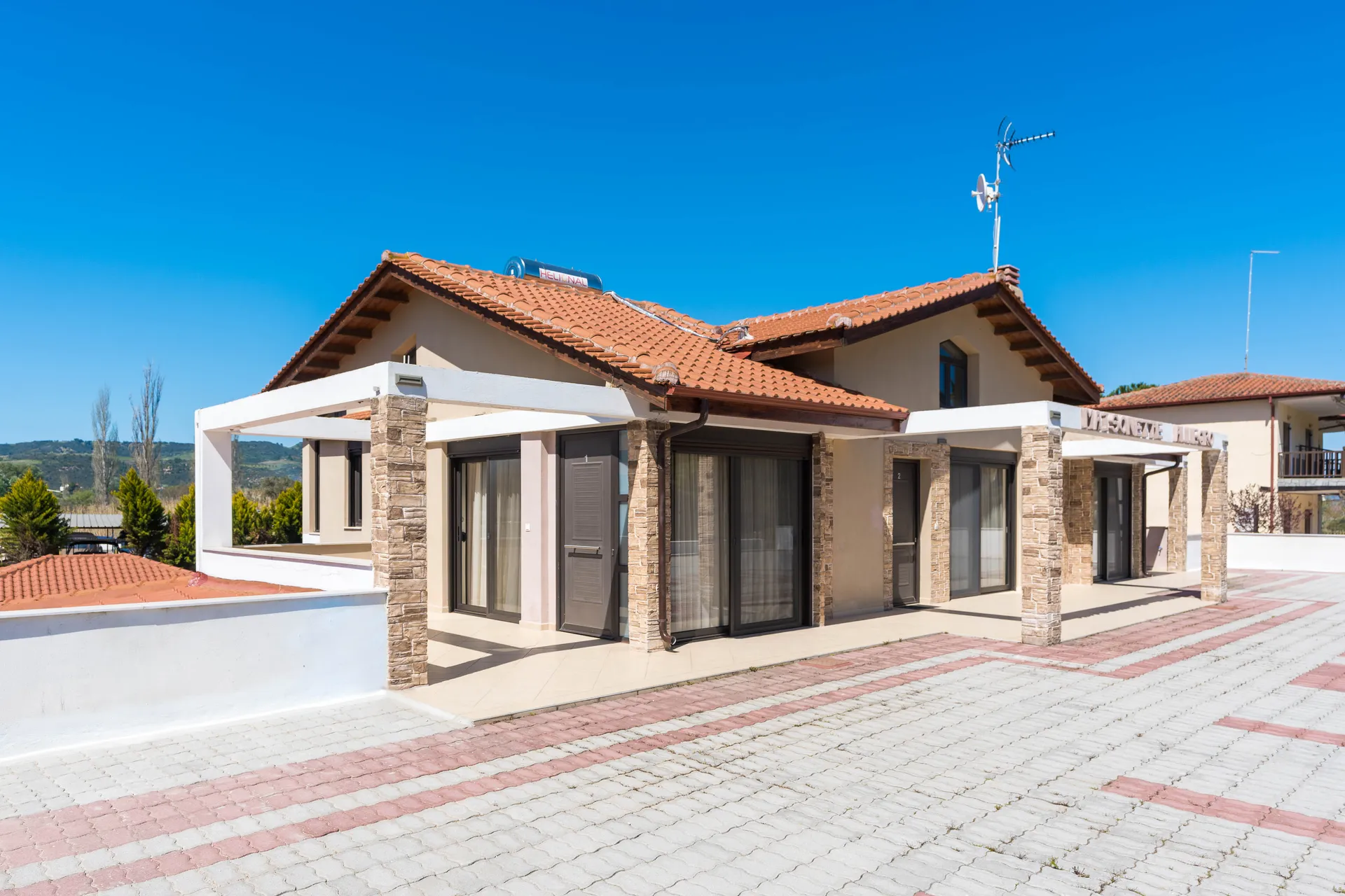 Svaki mezonet je dizajniran sa ljubavlju i pažnjom posvećenom detaljima kako bi ispunio atmosferu doma. Prostorne sobe su opremljene svim modernim sadržajima, uključujući udoban nameštaj, klima uređaj i besplatan Wi-Fi. Kuhinja-trpezarija je potpuno opremljena modernim aparatima, uključujući mašinu za pranje sudova, šporet i frižider, što vam omogućava da pripremite svoja omiljena jela. Usisivač je takođe obezbeđen za vašu udobnost. Mezoneti mogu da prime 6 do 7 osoba, što ih čini odličnim izborom za porodični odmor ili prijateljska druženja. Za vašu udobnost, svaki mezonet ima jedno parking mesto.