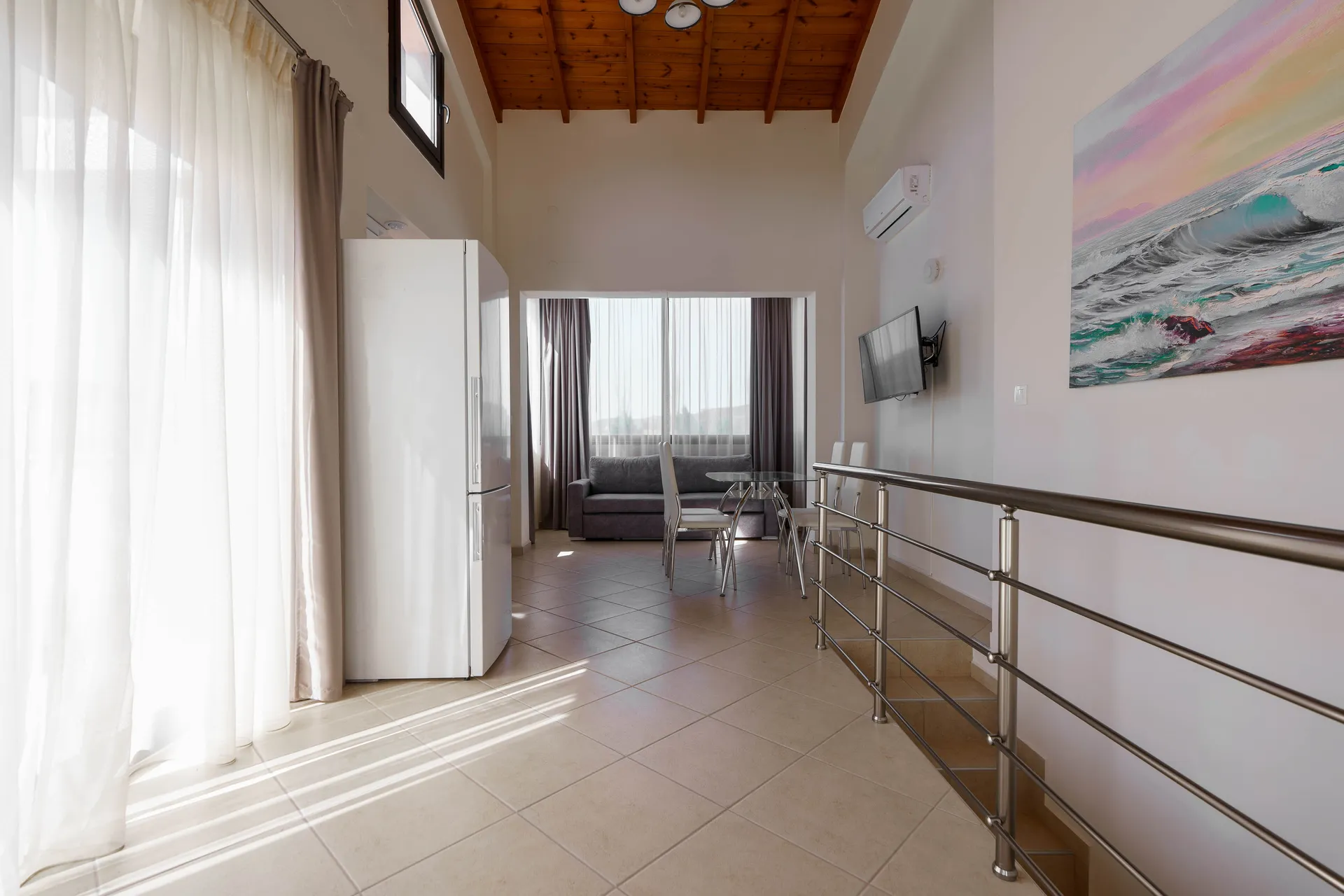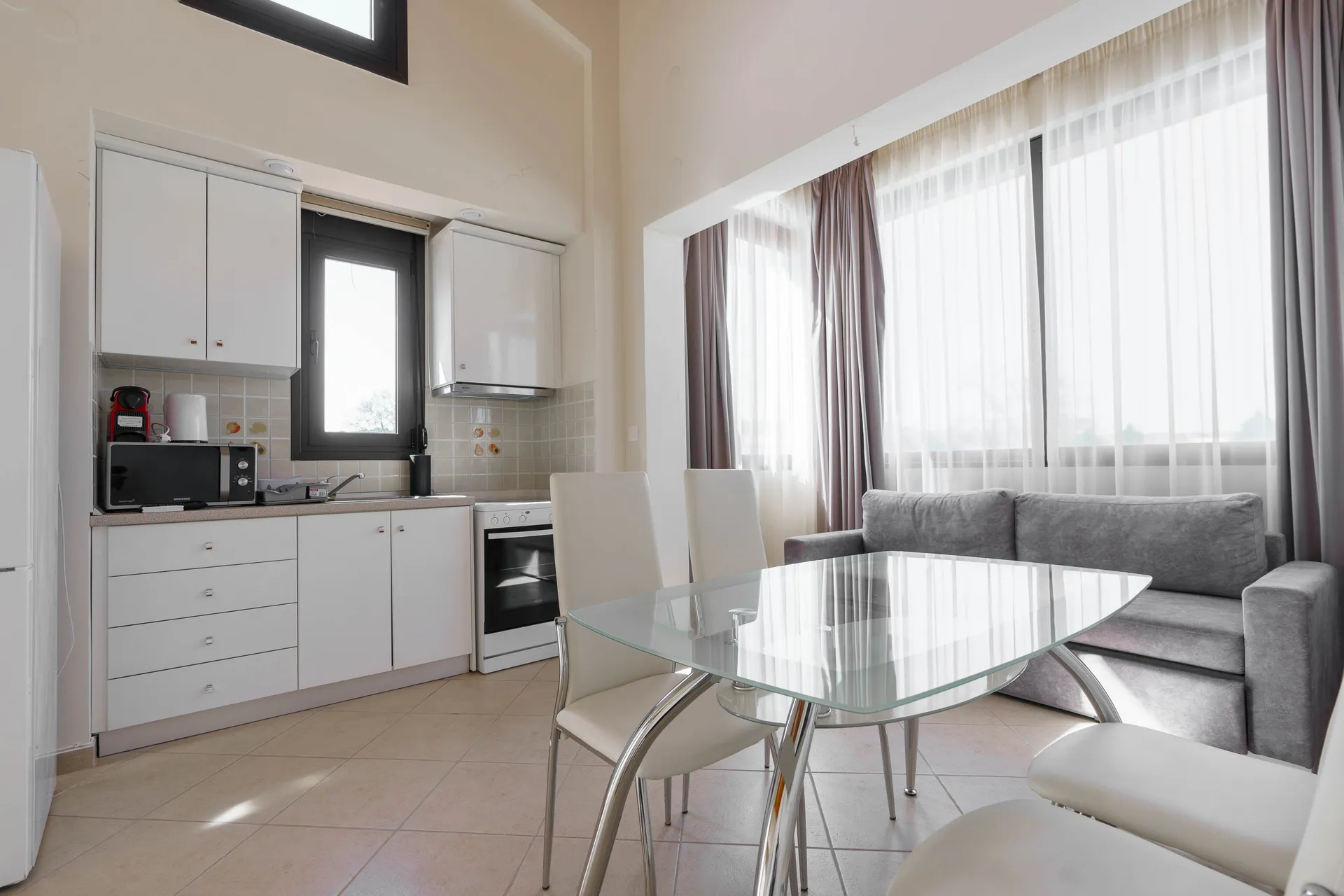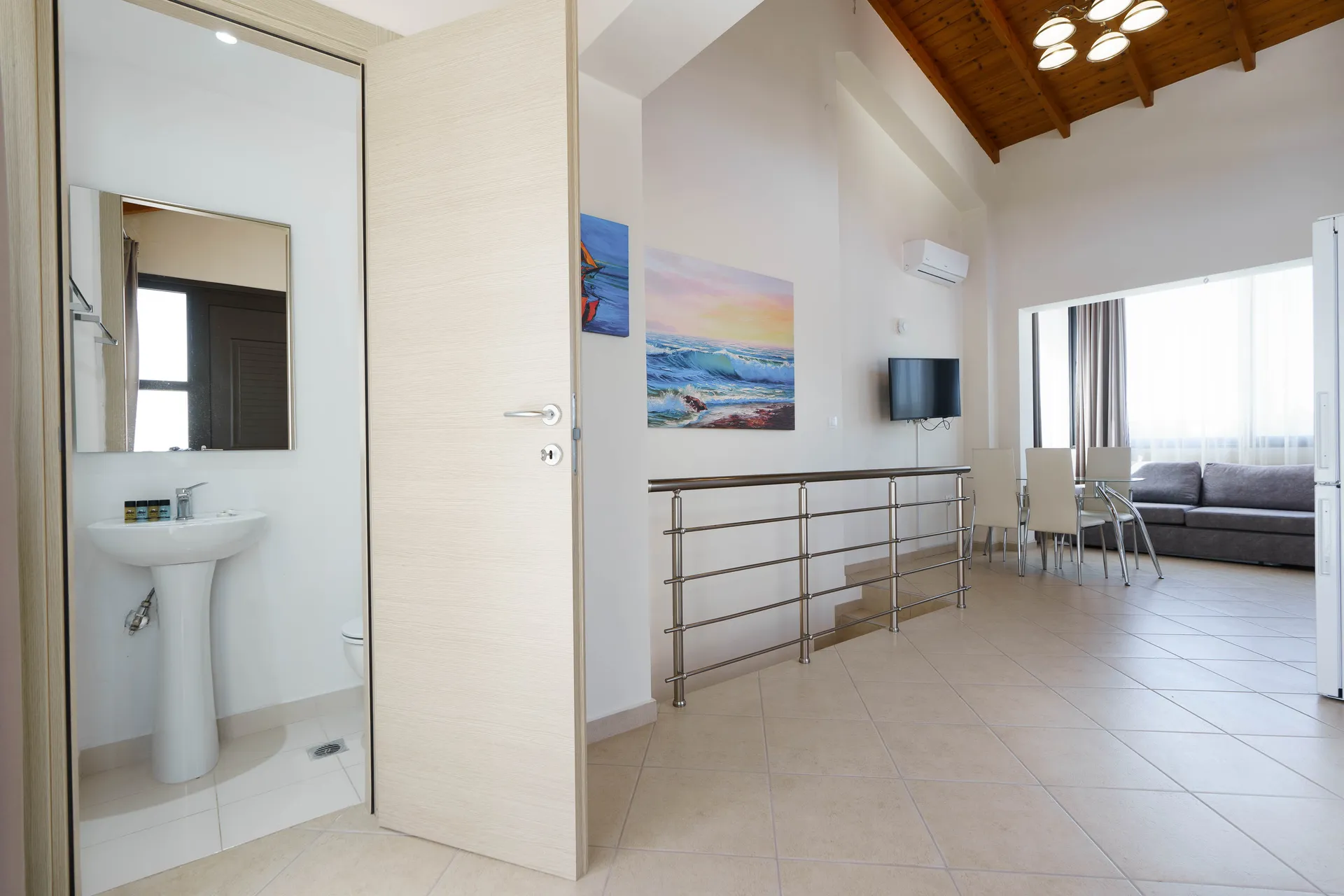 Svaki mezonet je dizajniran sa ljubavlju i pažnjom posvećenom detaljima kako bi ispunio atmosferu doma. Prostorne sobe su opremljene svim modernim sadržajima, uključujući udoban nameštaj, klima uređaj i besplatan Wi-Fi. Kuhinja-trpezarija je potpuno opremljena modernim aparatima, uključujući mašinu za pranje sudova, šporet i frižider, što vam omogućava da pripremite svoja omiljena jela. Usisivač je takođe obezbeđen za vašu udobnost. Mezoneti mogu da prime 6 do 7 osoba, što ih čini odličnim izborom za porodični odmor ili prijateljska druženja. Za vašu udobnost, svaki mezonet ima jedno parking mesto.
