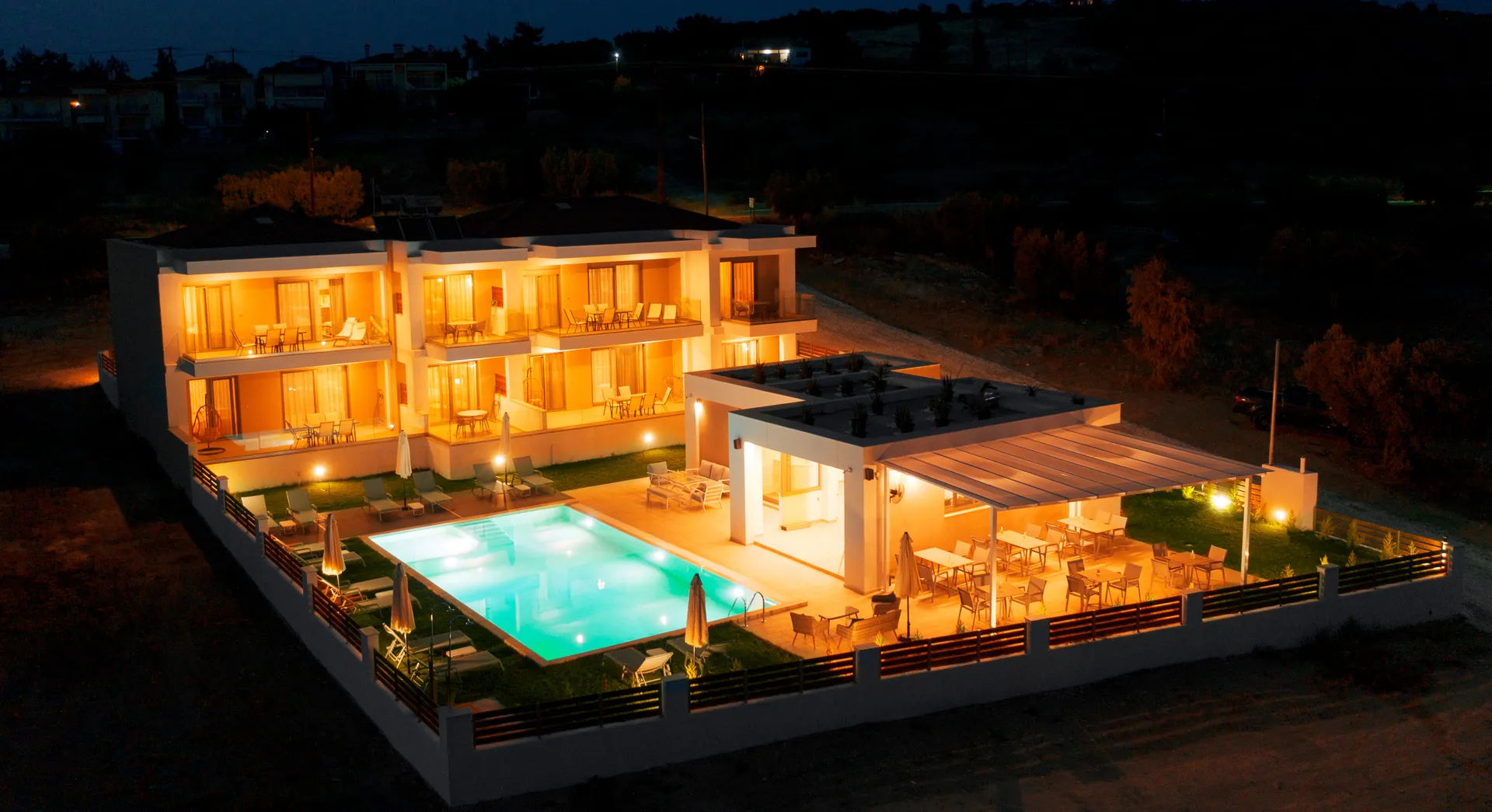 Sastoji se od 8 modernih apartmana i suitova, u kompleksu koji ima zajednički bazen za decu i odrasle, recepciju, salon, bazen sa barom pored bazena. Kompleks je udaljen 70 metara od plaže.