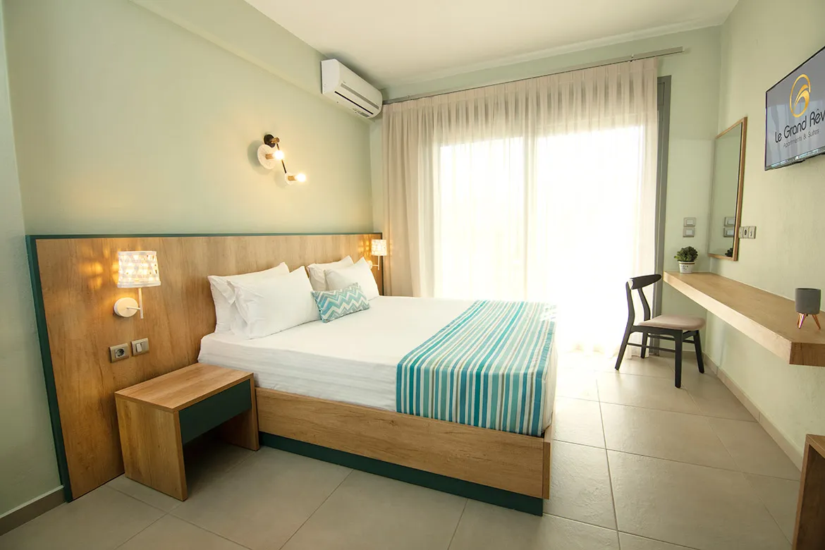 Le Grand Reve, sa svojom minimalističkom arhitekturom i urednom lepotom, nudi fantastičan pogled na Egejsko more. Njegovi gosti mogu uživati u fantastičnim koktelima u baru pored bazena, dok posmatraju poslednje zrake sunca kako nestaju u plavetnilu Egejskog mora. Bazen je opremljen udobnim ležaljkama, dok sobe nude fantastičan pogled i karakterišu se jednostavnošću dizajna i pogodnostima za goste.
