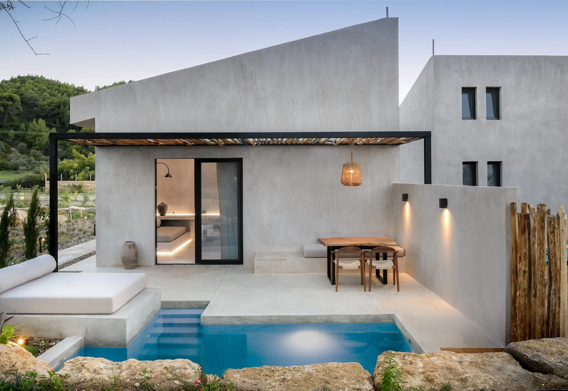 Okruženi maslinama, divljim biljem i aloe biljkama, Pure Villas obećavaju sofisticirani ambijent i neometanu privatnost koja neguje vašu kreativnu stranu i budi vašu radoznalost. Ovde je intimnost isprepletena sa prirodom.