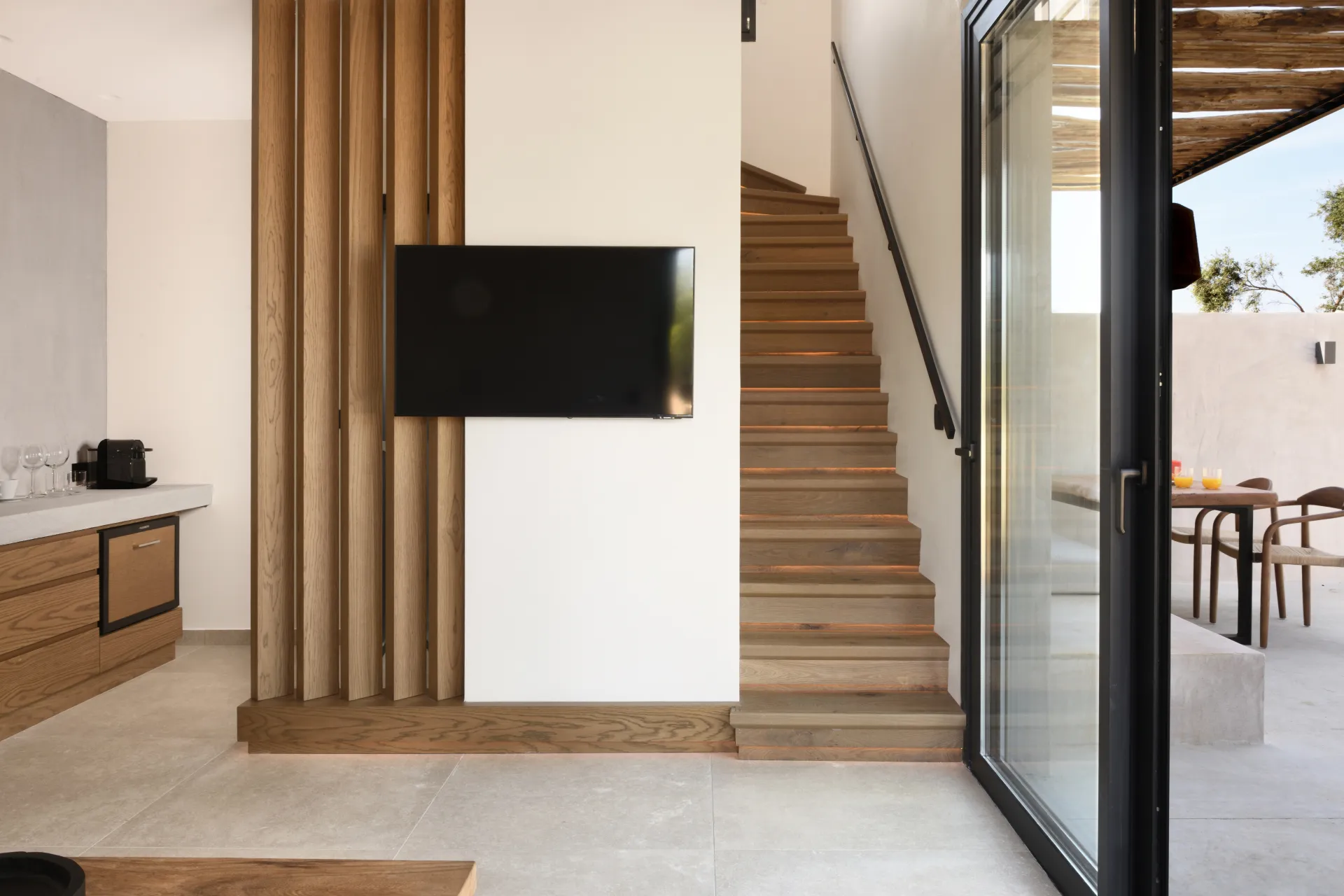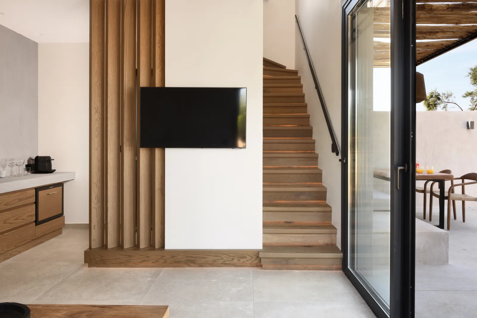 Zasnovani na tradicionalnim arhitektonskim elementima Mediterana, naši apartmani odlikuju se autentičnim savremenim dizajnom i najsavremenijom tehnologijom, osamljeni i privatni pružaju vam idealno skrovište, savršenu odskočnu dasku za otkrivanje grčkog načina života. Svaki kutak je prožet osećajem smirenosti i opuštanja.