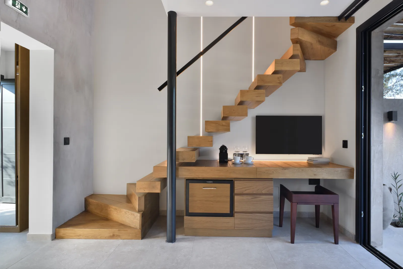 Stilski apartman uređen s poštovanjem prirodnih materijala gde je svaki kutak prožet osećajem smirenosti i opuštanja. Pobegnite na svoju privatnu udobnu terasu, uživajte u svom omiljenom napitku i jednostavno proslavite ove dragocene trenutke čistog blaženstva u okruženju stvorenom za život punim plućima. Naš Superior apartman je sve što vam je potrebno – i više od toga – za nezaboravan i luksuzan boravak.