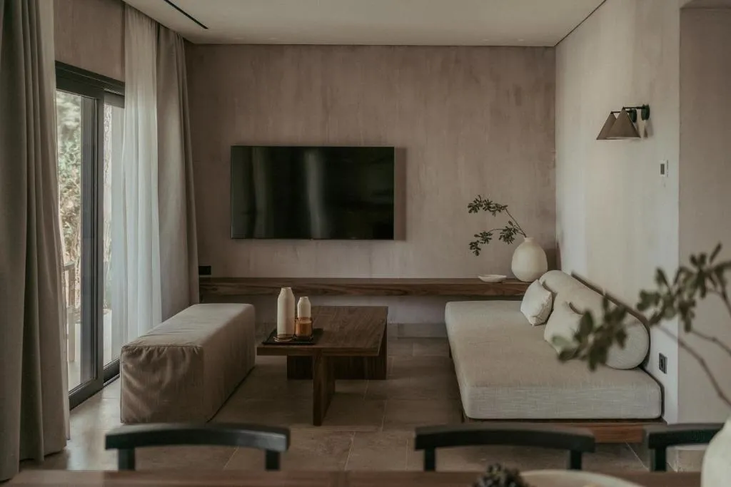 Pažnja posvećena najsitnijim detaljima, poštovanje prirodnih materijala, elegantna i udobna rešenja savršeno su spojena od strane dizajnera enterijera Dimitris Lukas kako bi se osigurao mir i zavodljivo probudila sva čula.