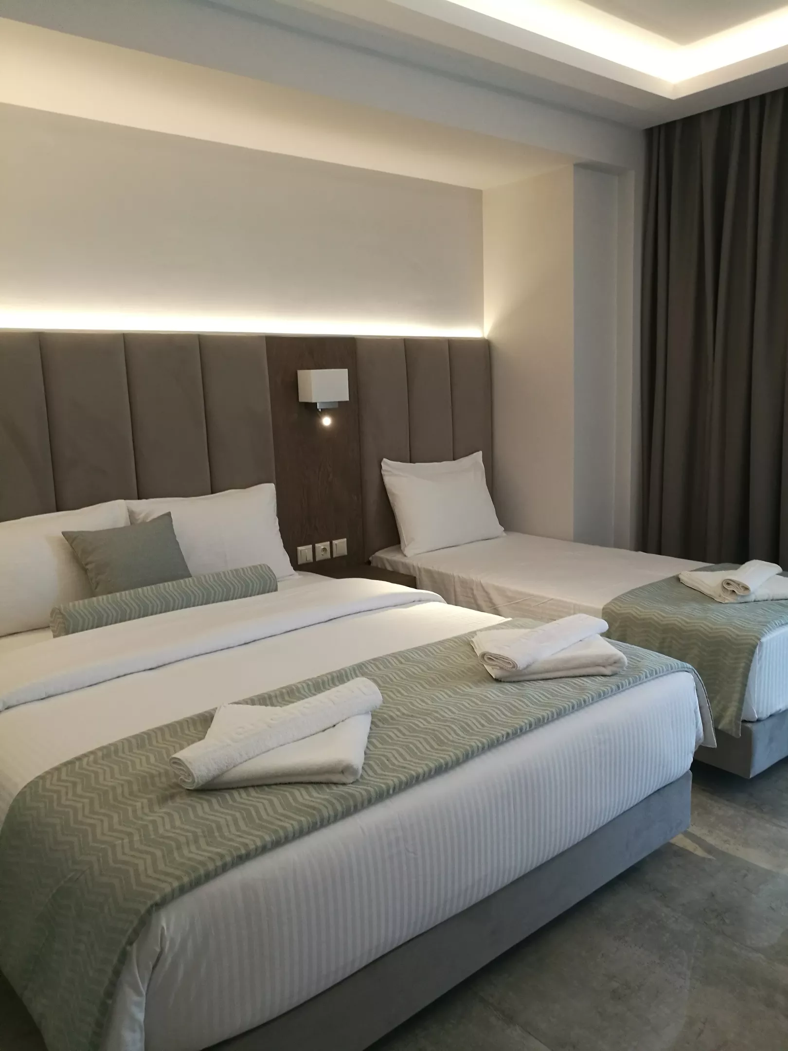 Dvokrevetna/trokrevetna soba za 3 osobe (3 odrasle osobe) ima elegantan dekor, klima uređaj/grejanje, TV ravnog ekrana, potpuno opremljenu kuhinju sa električnim šporetom sa 2 keramičke ploče za kuvanje i mikrotalasnom pećnicom. Sopstveno kupatilo sadrži fen za kosu i toaletne potrepštine. Privatna terasa ili balkon opremljeni su prostorom za sedenje i pružaju jedinstvene trenutke opuštanja. Obezbeđen je besplatan Wi-Fi.