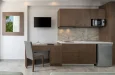 Ova soba nudi povezani prostor za spavanje i kuhinju, sadrži 1 bračni krevet i klizni sof na razvlačenje. Ova porodična soba za 3 osobe ima elegantan dekor, klima uređaj/grejanje, TV ravnog ekrana, potpuno opremljenu kuhinju sa električnim šporetom sa 2 keramičke ploče za kuvanje i mikrotalasnom pećnicom. Sopstveno kupatilo sadrži fen za kosu i potrepštine. Privatna terasa je opremljena prostorom za sedenje i nudi jedinstvene trenutke opuštanja. Obezbeđen je besplatan bežični internet.