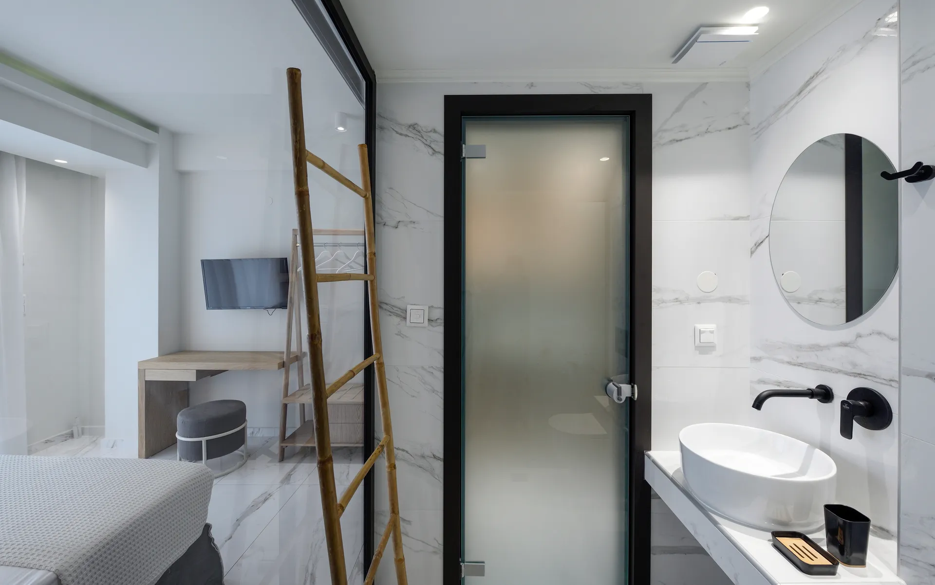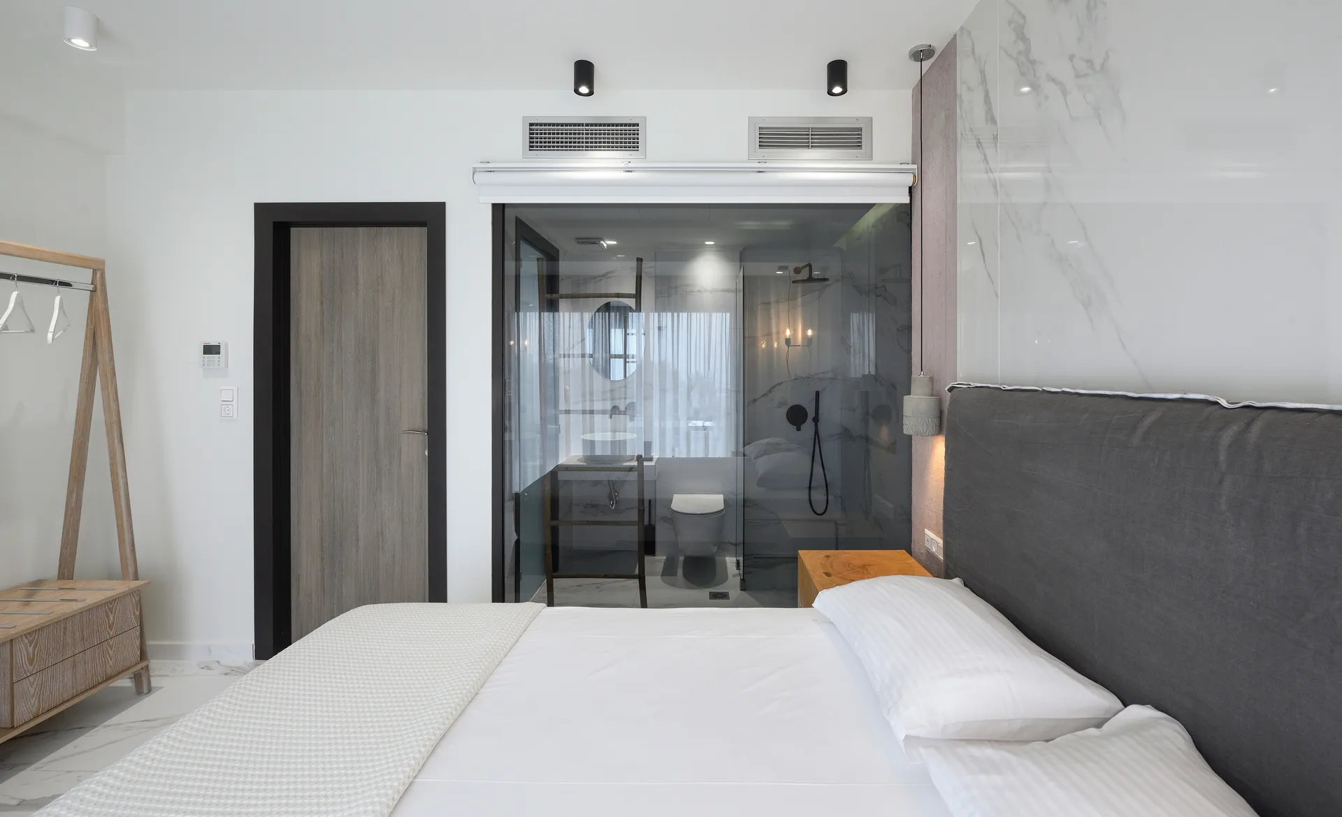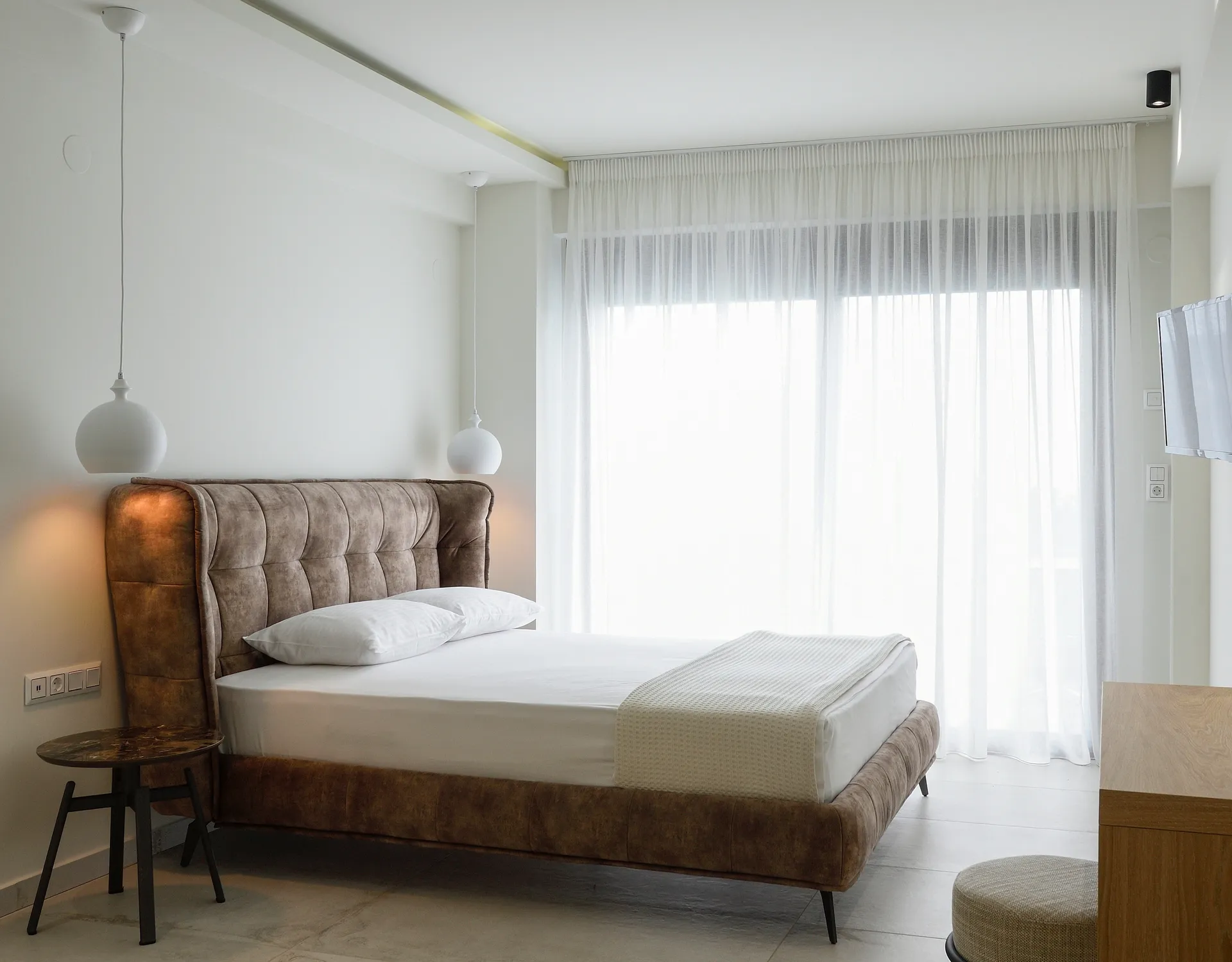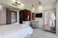 Deluks studio sa pogledom na more, naša dvokrevetna soba sa pogledom na more, oaza udobnosti i opuštanja, posebno dizajnirana za dve osobe. Ova soba nudi miran prostor gde možete da se odmorite i uživate u jedinstvenim zalascima sunca iznad prelepe plaže Marmaras.