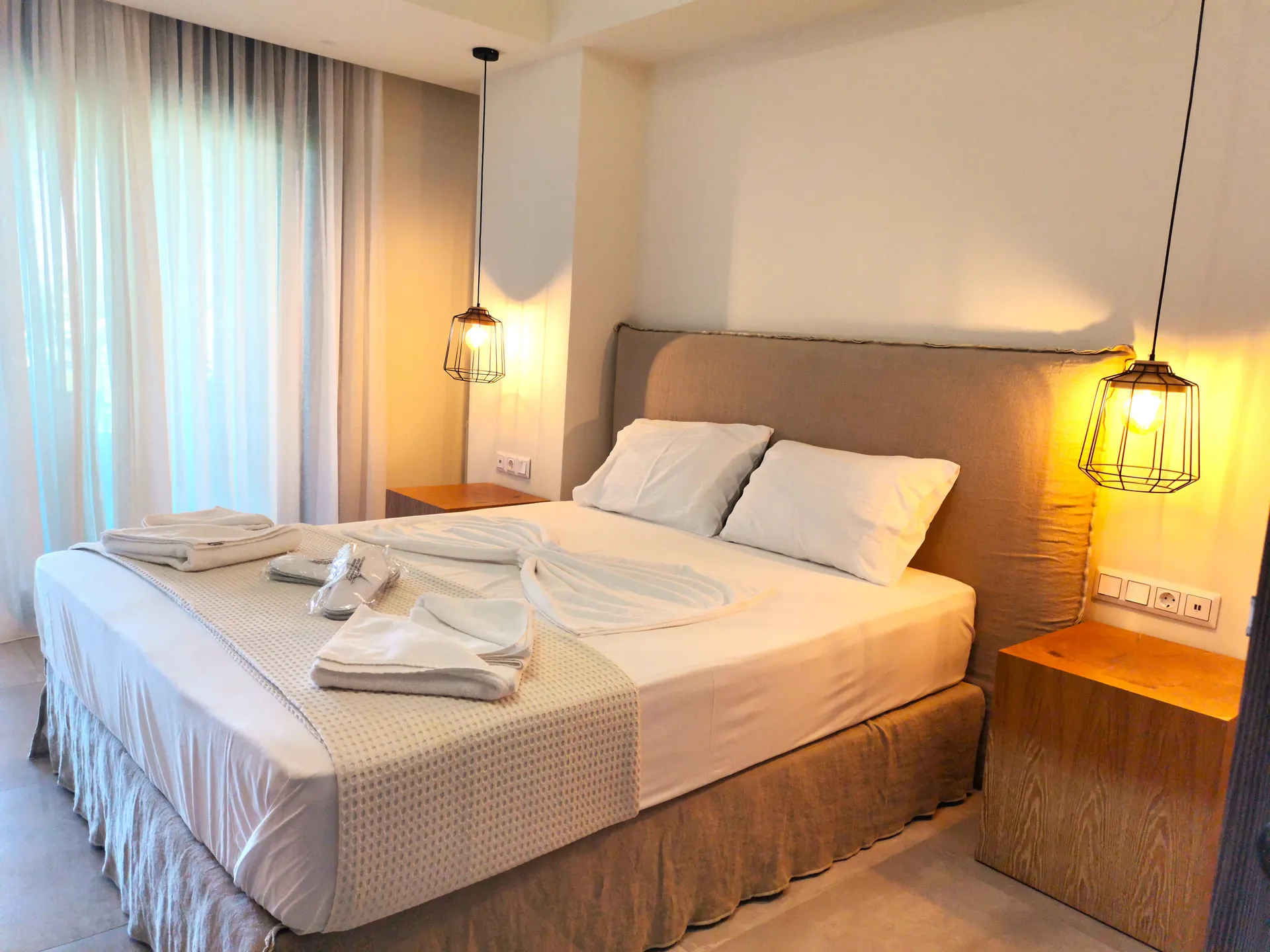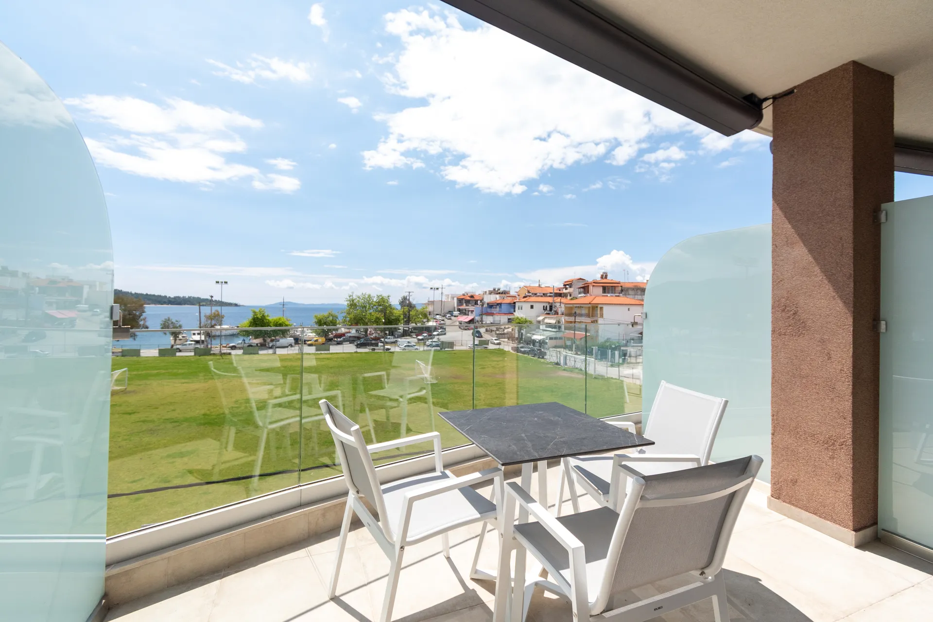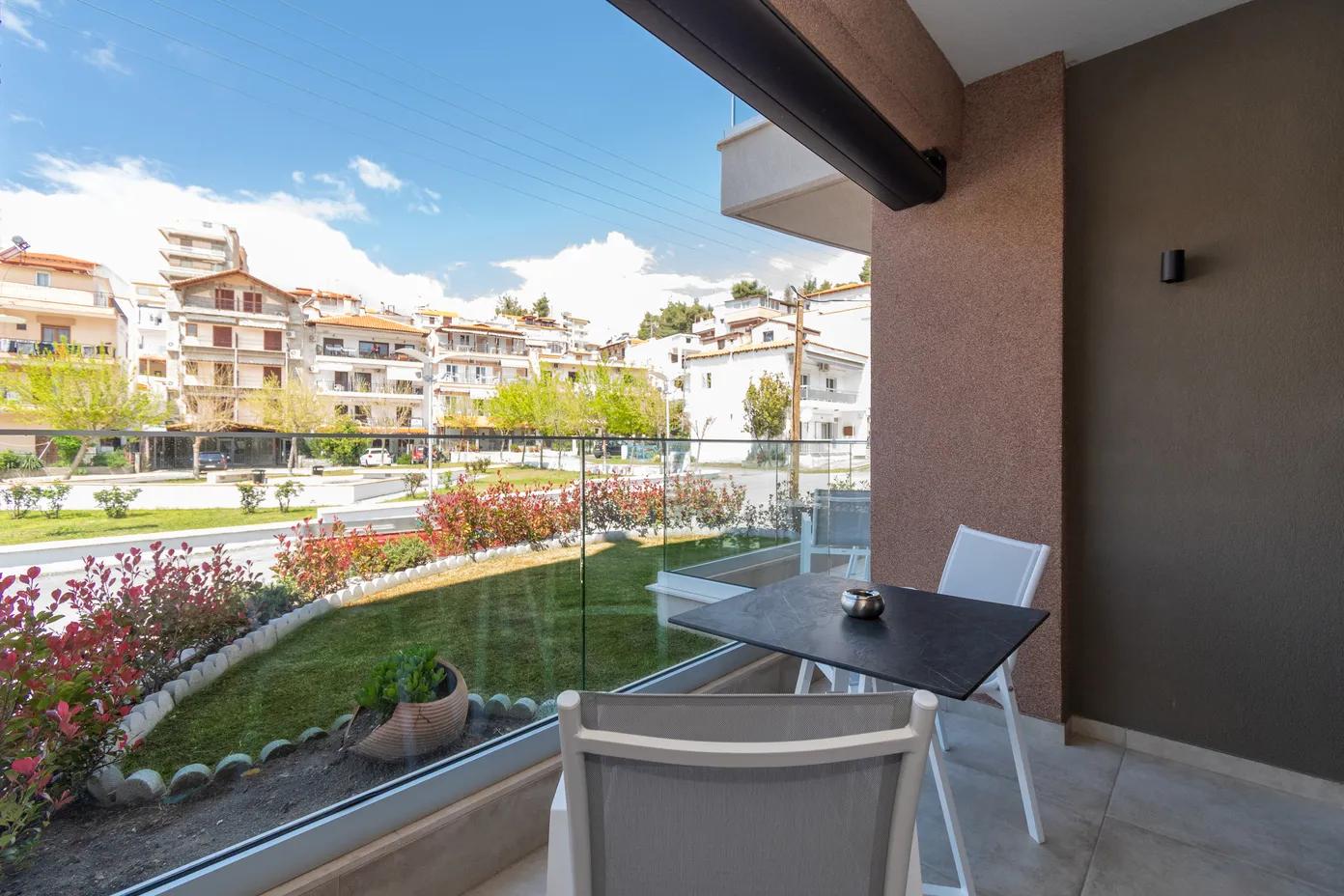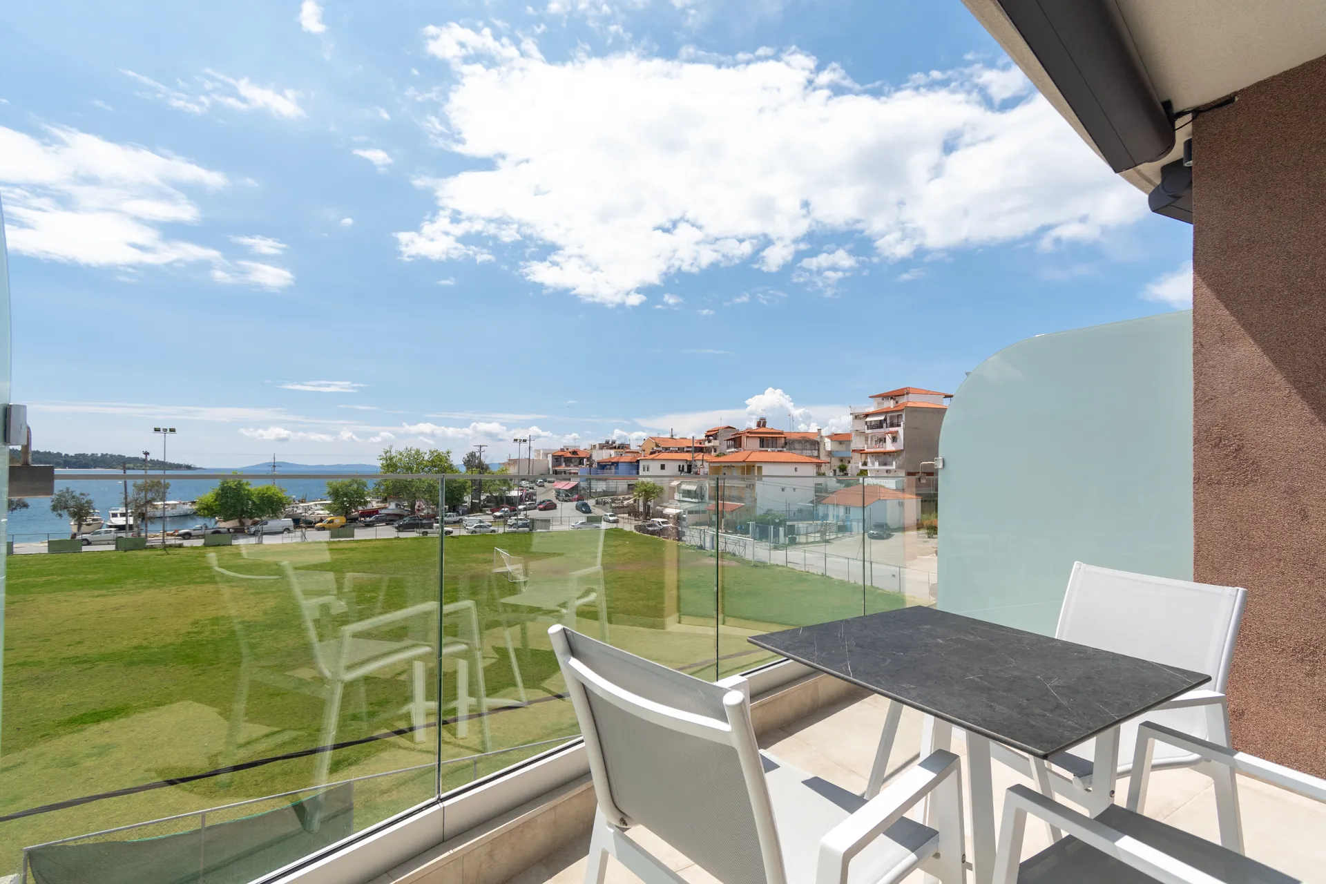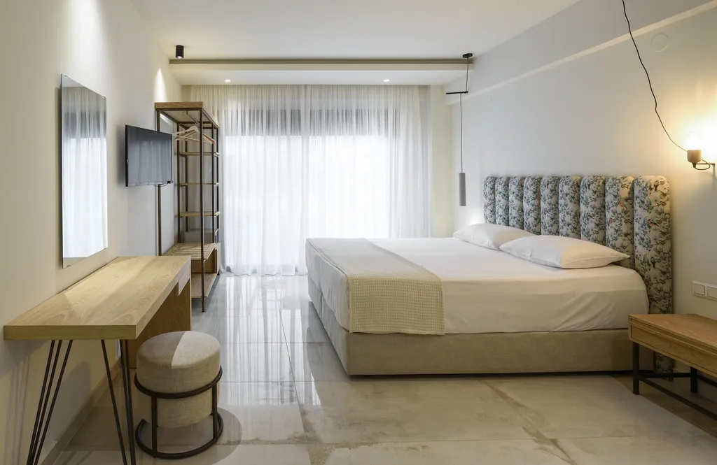 Sve naše sobe su prozračne, sunčane, sa velikim francuskim prozorima i velikim bračnim krevetima. Pogodne su za parove, mladence i male porodice. Imaju velike balkone sa stolom i stolicama, gde možete uživati u doručku sa pogledom na more, selo i poznati Porto Karas Grand Resort.