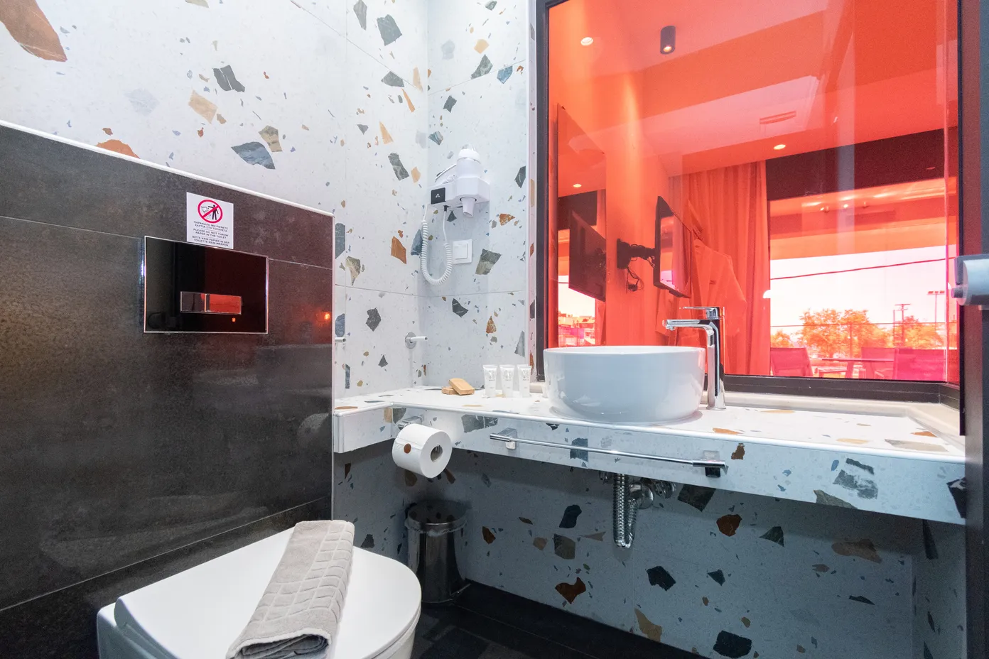 Izuzetna i ljubazna usluga menadžera apartmana, Tanasisa i Venecije, će vas impresionirati. Naći ćete ih na recepciji svakog dana, od 08.00 do 22.30, spremne da vam pomognu i ispune svaku vašu želju. Thetis Boutique Apartments su udaljeni samo 300 metara od centra Marmarasa, gde možete uživati u šetnji i posetiti prodavnice, male taverne i kafe barove, što će vaš odmor učiniti malo živahnijim. Recepcija i udoban lobi vas očekuju u prizemlju, gde možete uživati u piću dobrodošlice po dolasku. Besplatan javni parking je dostupan svuda oko hotela, a opštinski parking je udaljen samo 100 metara za dodatno besplatno parkiranje. Posebna rampa na bočnom ulazu u zgradu omogućava pristup osobama sa invaliditetom.