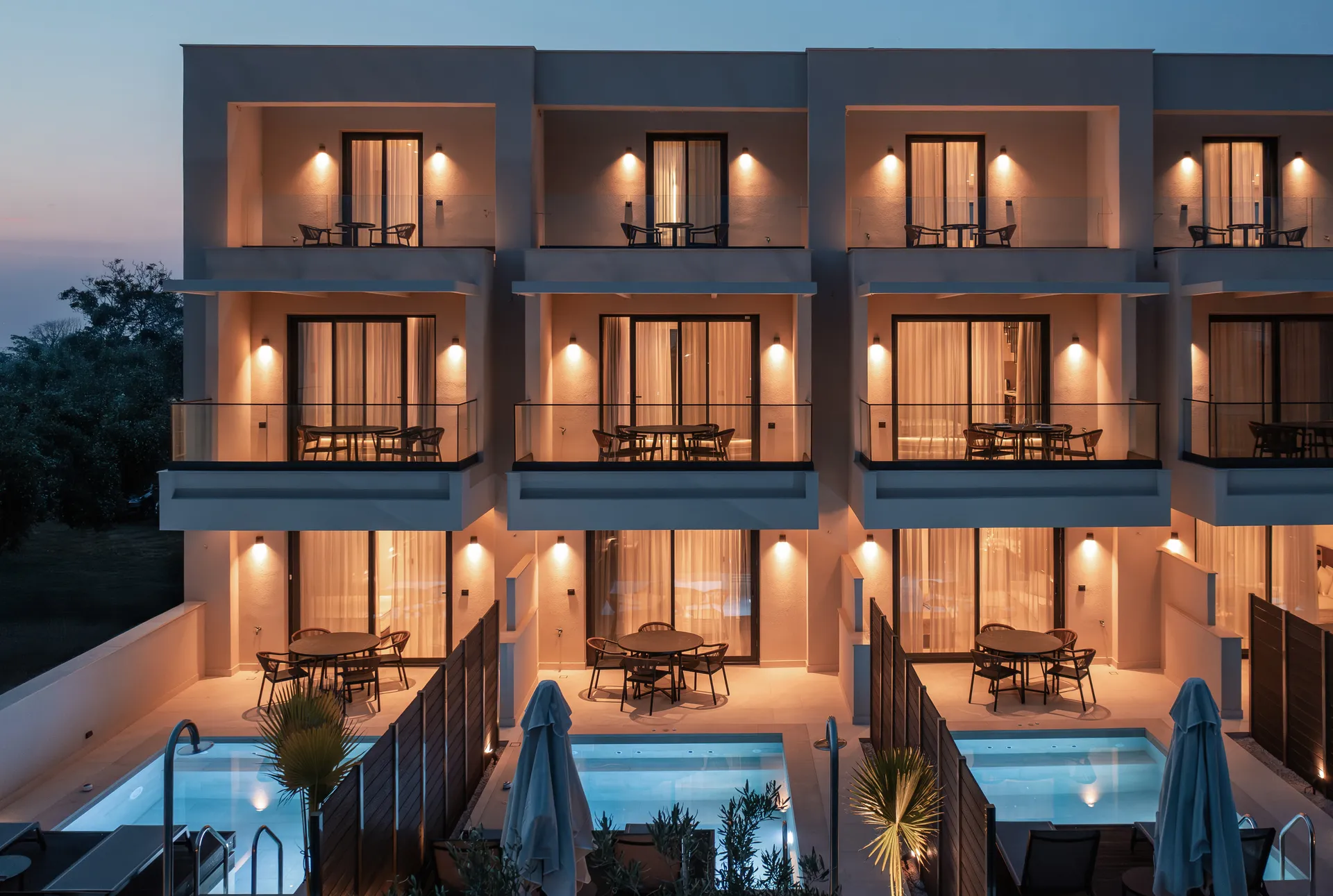 • Privatni bazeni i prostrani balkoni sa panoramskim pogledom