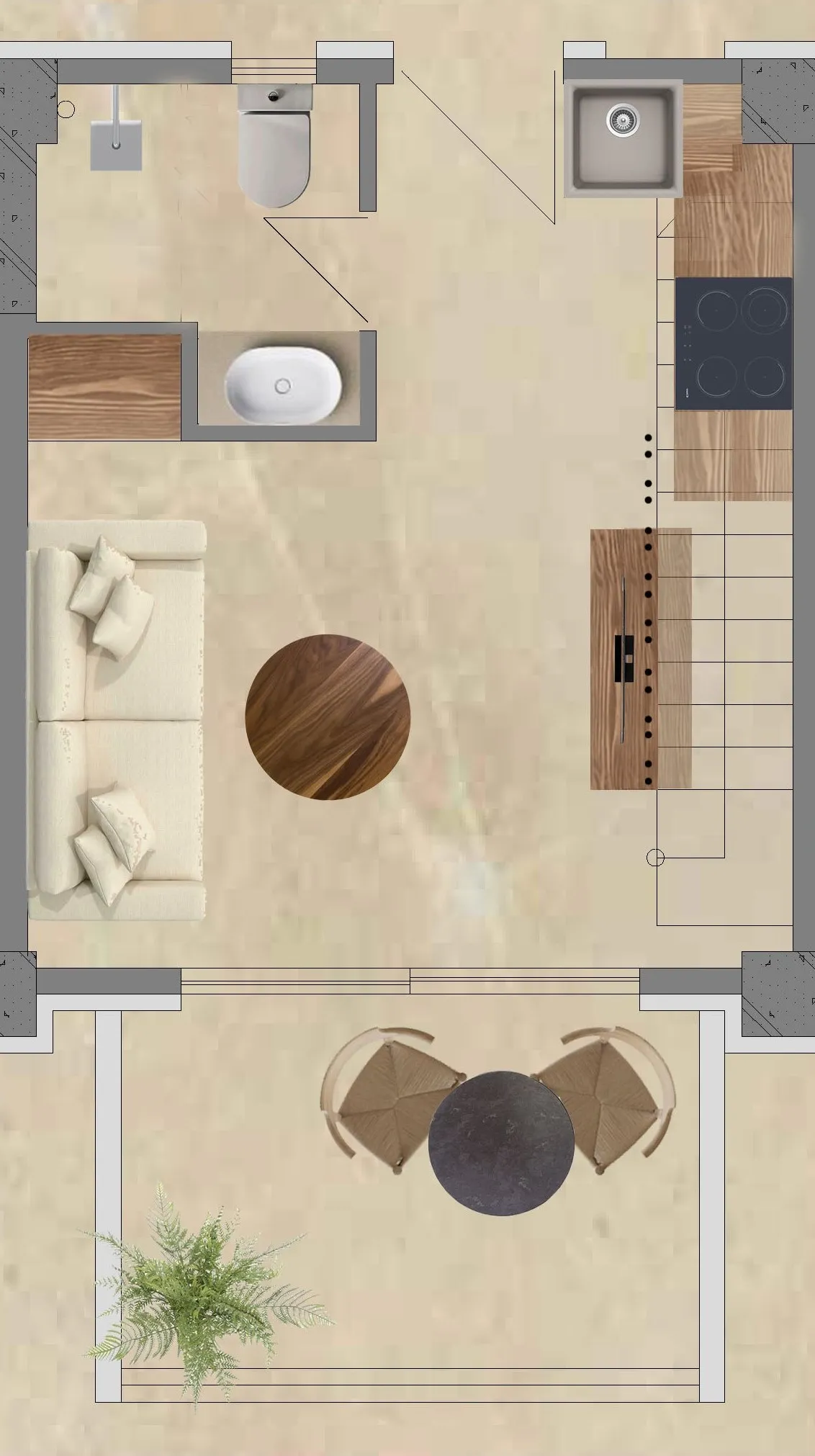 Uđite u udobnost našeg pametno dizajniranog mezoneta u prizemlju, pažljivo kreiranog da ponudi luksuzno i tehnološki napredno iskustvo. Prostirući se na dva nivoa, ovaj apartman je savršen za porodice ili grupe do četiri odrasle osobe koje traže savremenu eleganciju i moderne sadržaje.