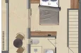Na donjem nivou nalazi se udoban dnevni boravak sa sofom na razvlačenje (1,6 x 2 m) za smeštaj do dva gosta, potpuno opremljena kuhinja sa aparatom za kafu Nespresso, električnim kuvalom i modernim aparatima, kao i stilsko kupatilo. Elegantno stepenište vodi do gornjeg nivoa, gde vas čekaju prostrana spavaća soba sa bračnim krevetom (1,6 x 2 m), dodatno kupatilo i privatni balkon sa zapanjujućim pogledom.