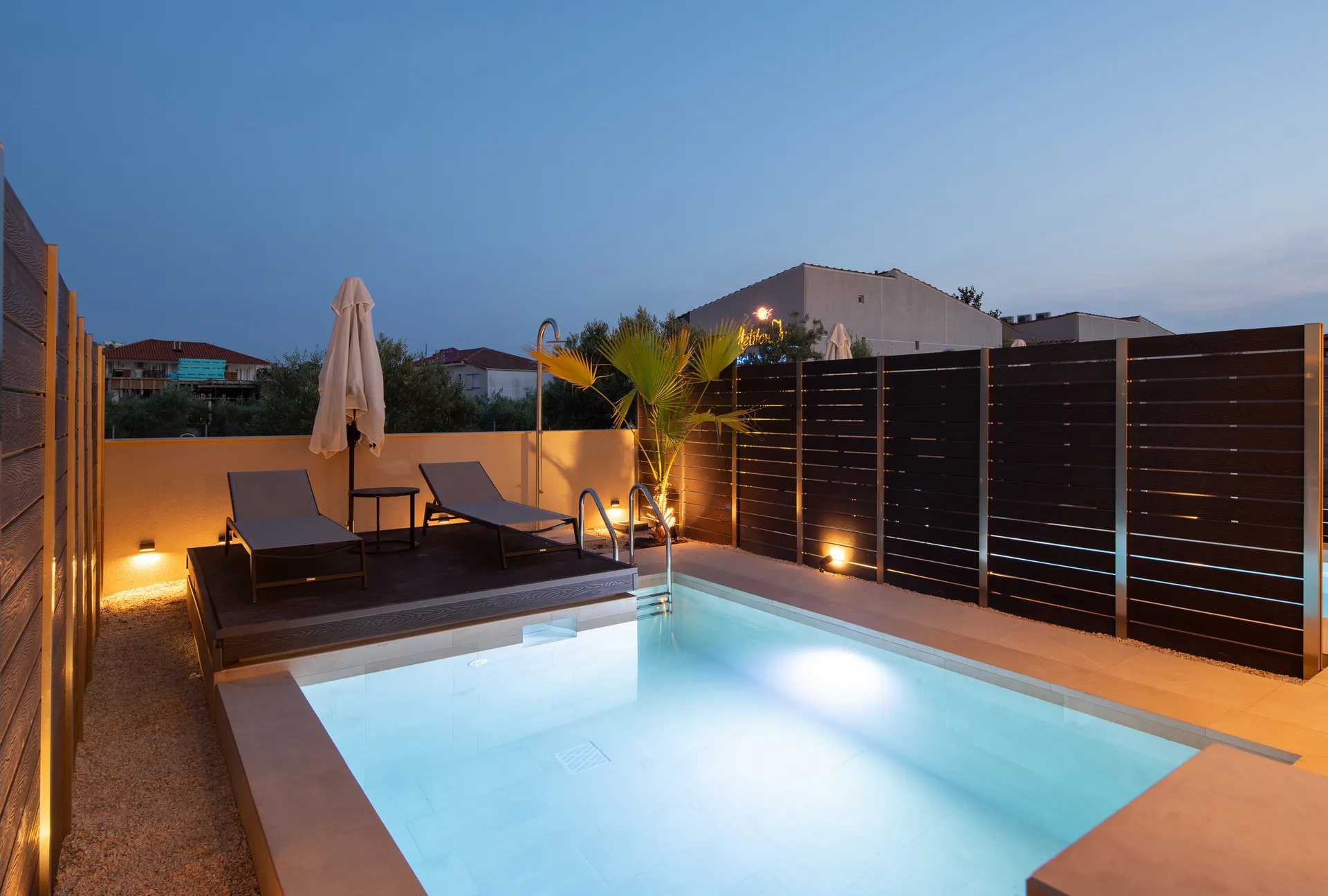 Uđite u udobnost našeg pametno dizajniranog Premium apartmana, pažljivo kreiranog da ponudi luksuzno i tehnološki napredno iskustvo. Sa privatnim bazenom u otvorenom prostoru od 45 m², ovaj apartman je idealan za porodice ili grupe do tri odrasle osobe i jednog deteta, nudeći savremenu eleganciju i moderne sadržaje.