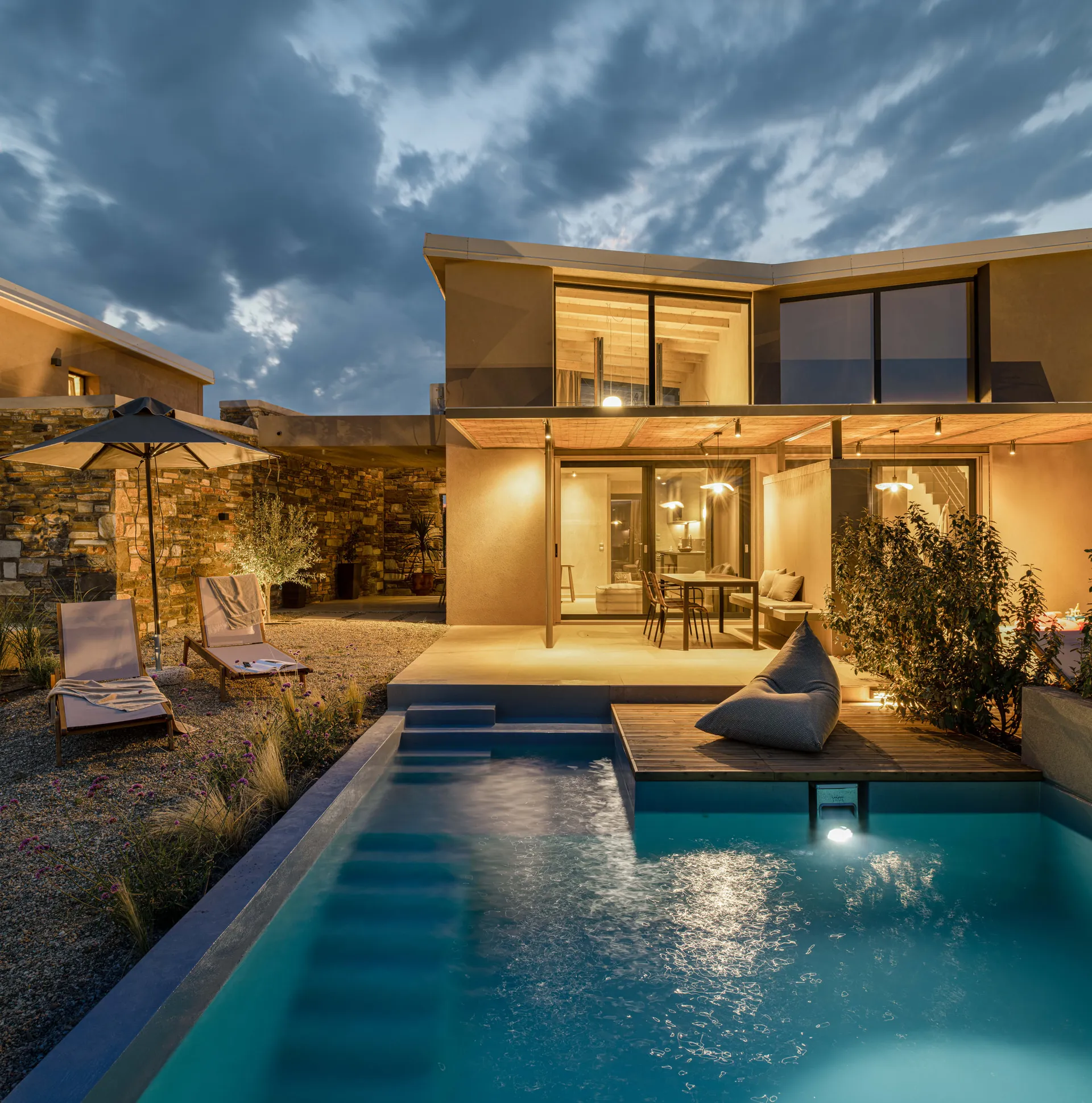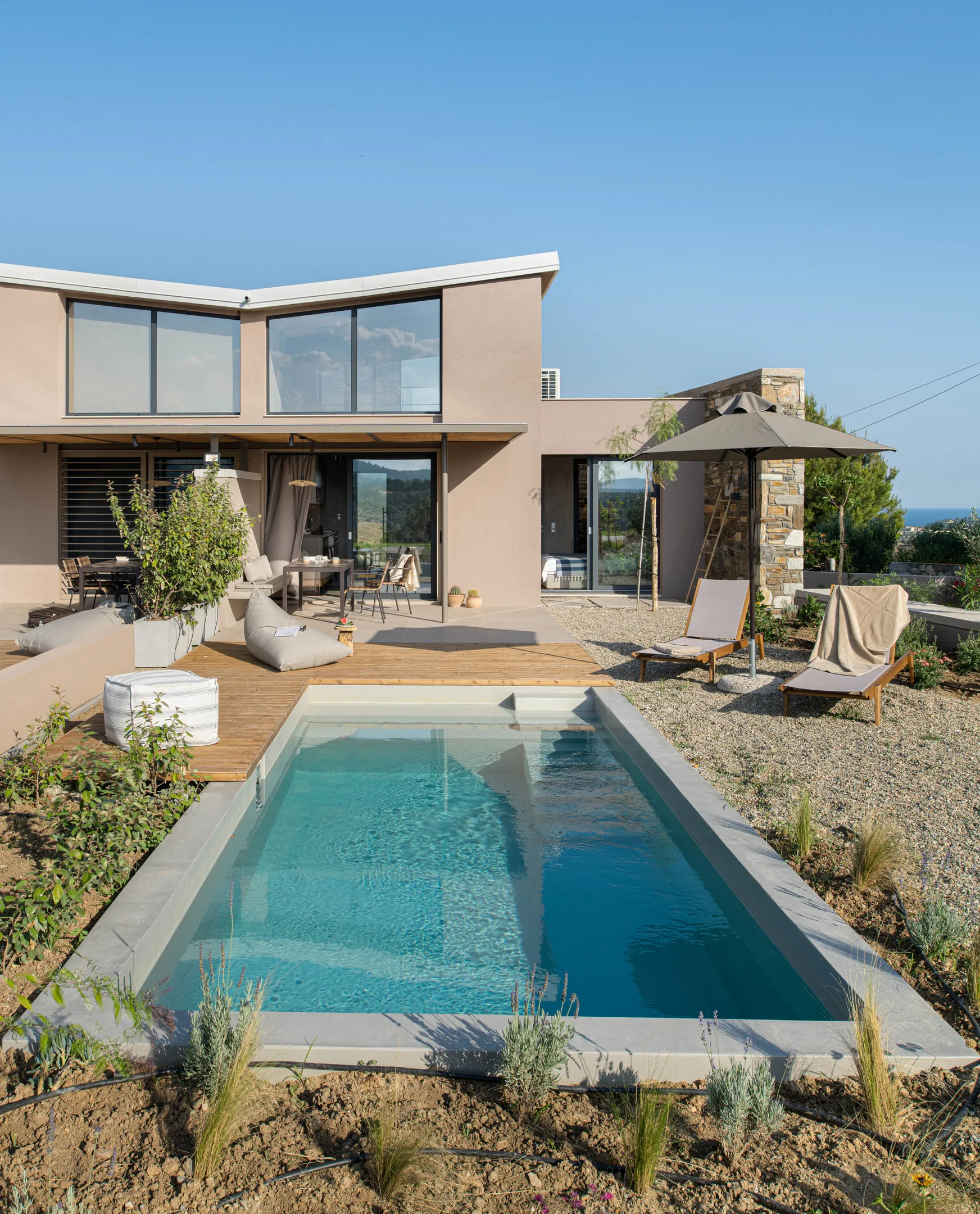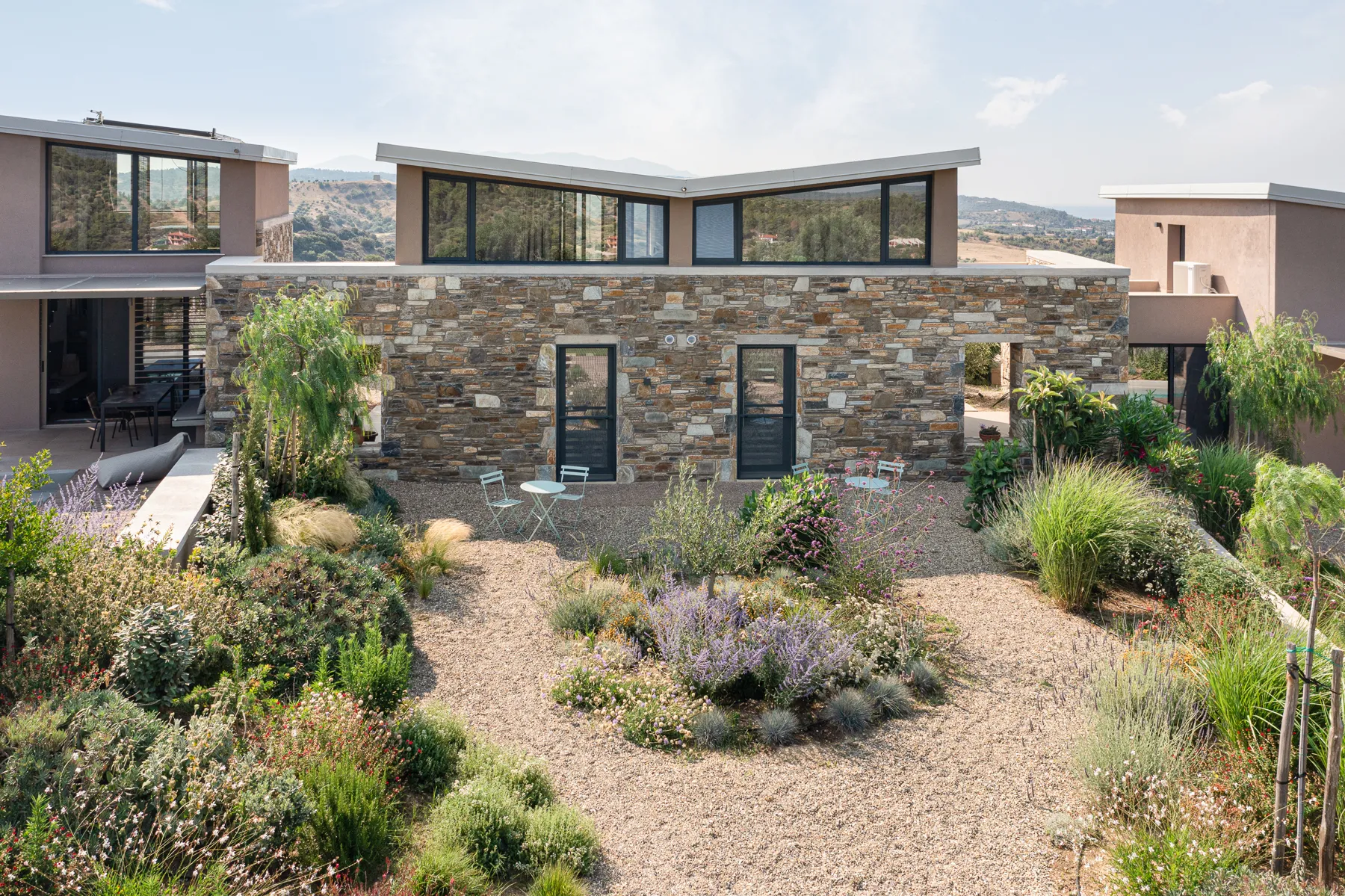 U mediteranskoj bašti, moderne kamene vile sa privatnim bazenom stvaraju opušteno i mirno okruženje.