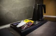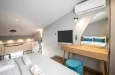 Soba je klimatizovana i opremljena modernim nameštajem, poseduje kupatilo sa tuš kabinom i fenom, ormar, potpuno opremljenu kuhinju sa frižiderom, priborom za pripremu kafe i kuvalom za vodu, bračnim krevetom i sofom na razvlačenje i sopstveni balkon ili terasu sa prostorom za sedenje.