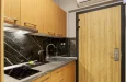 Studio je klimatizovan i opremljen modernim nameštajem, poseduje kupatilo sa tuš kabinom i fenom, ormar, potpuno opremljenu kuhinju sa frižiderom, priborom za pripremu kafe i kuvalom za vodu, bračnim krevetom i sofom na razvlačenje i sopstveni balkon ili terasu sa prostorom za sedenje i Wi-Fi Internetom.