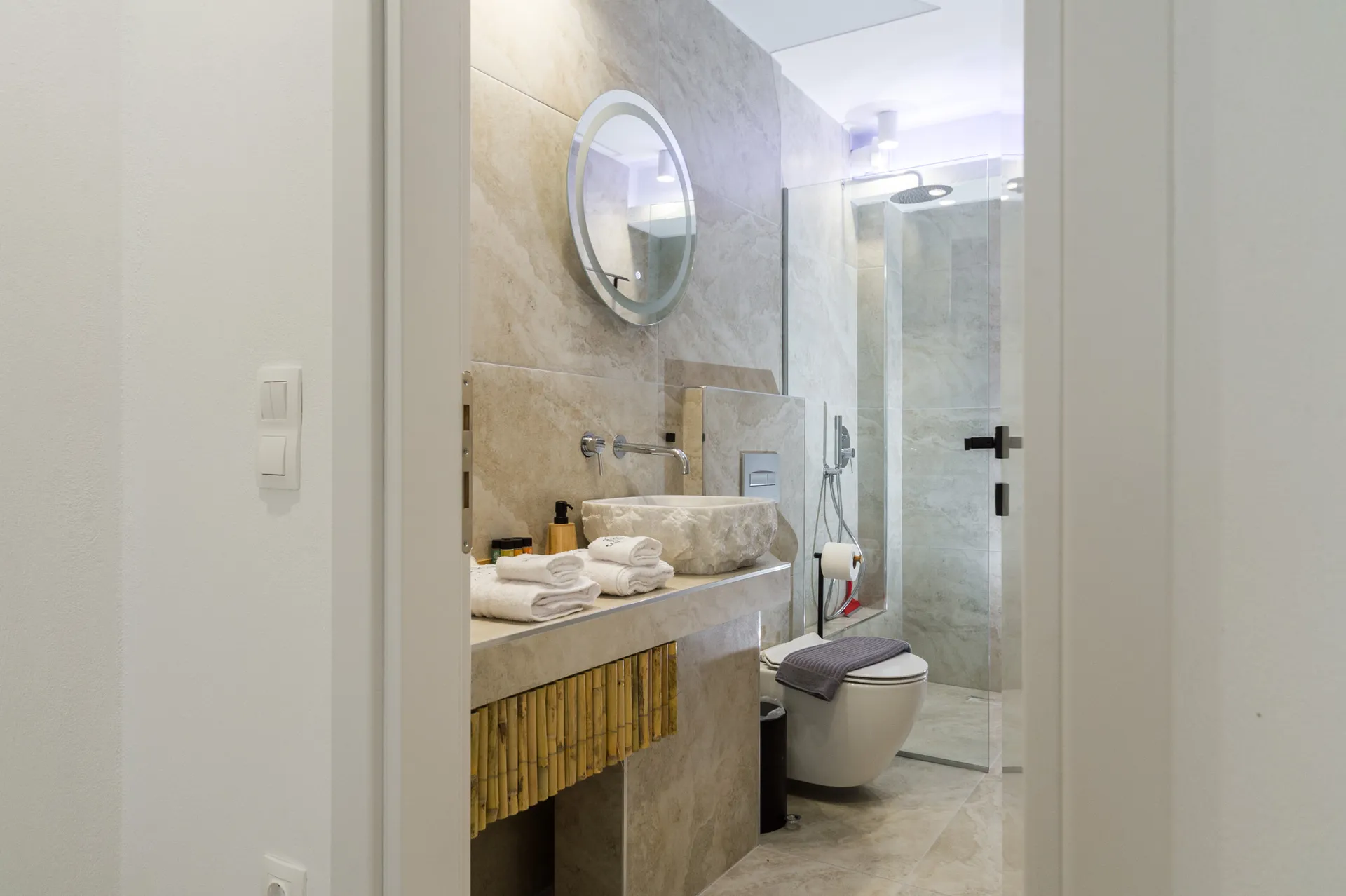 -Zajedničko kupatilo: Kupatilo sa tušem i vešerajem za dodatnu udobnost.