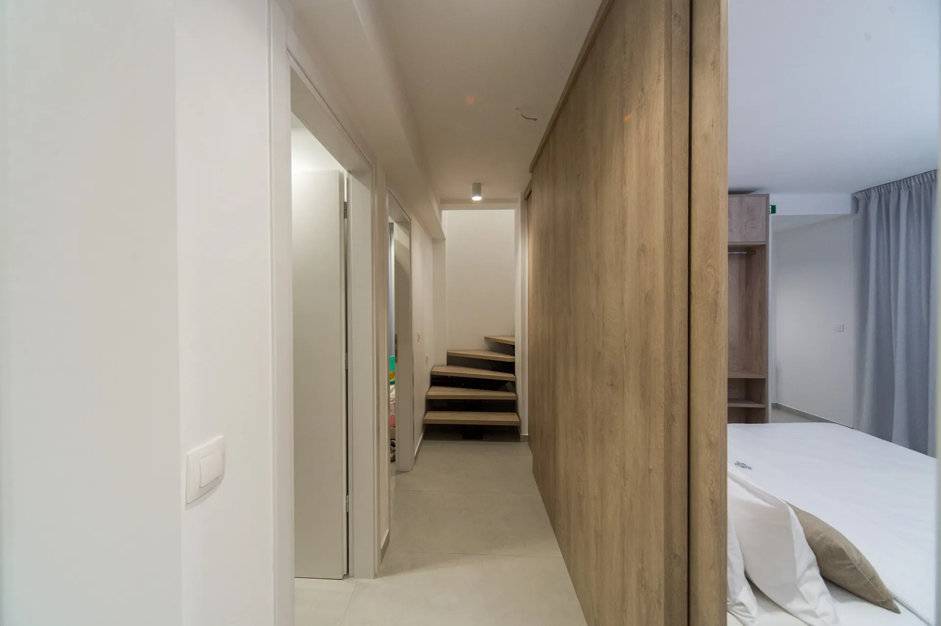 Sastoji se od 2 sprata, svaki ima svoju spavaću sobu, dnevni boravak, kuhinju i kupatilo sa tušem. Privatni parking, bazen, prostor za roštilj, Wi-Fi i klima uređaj.