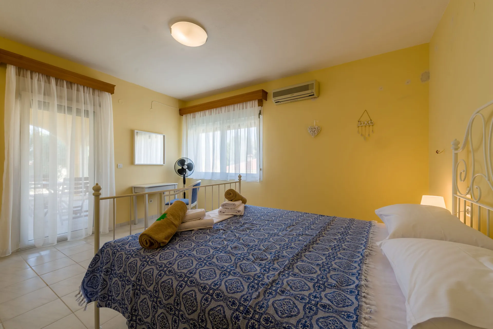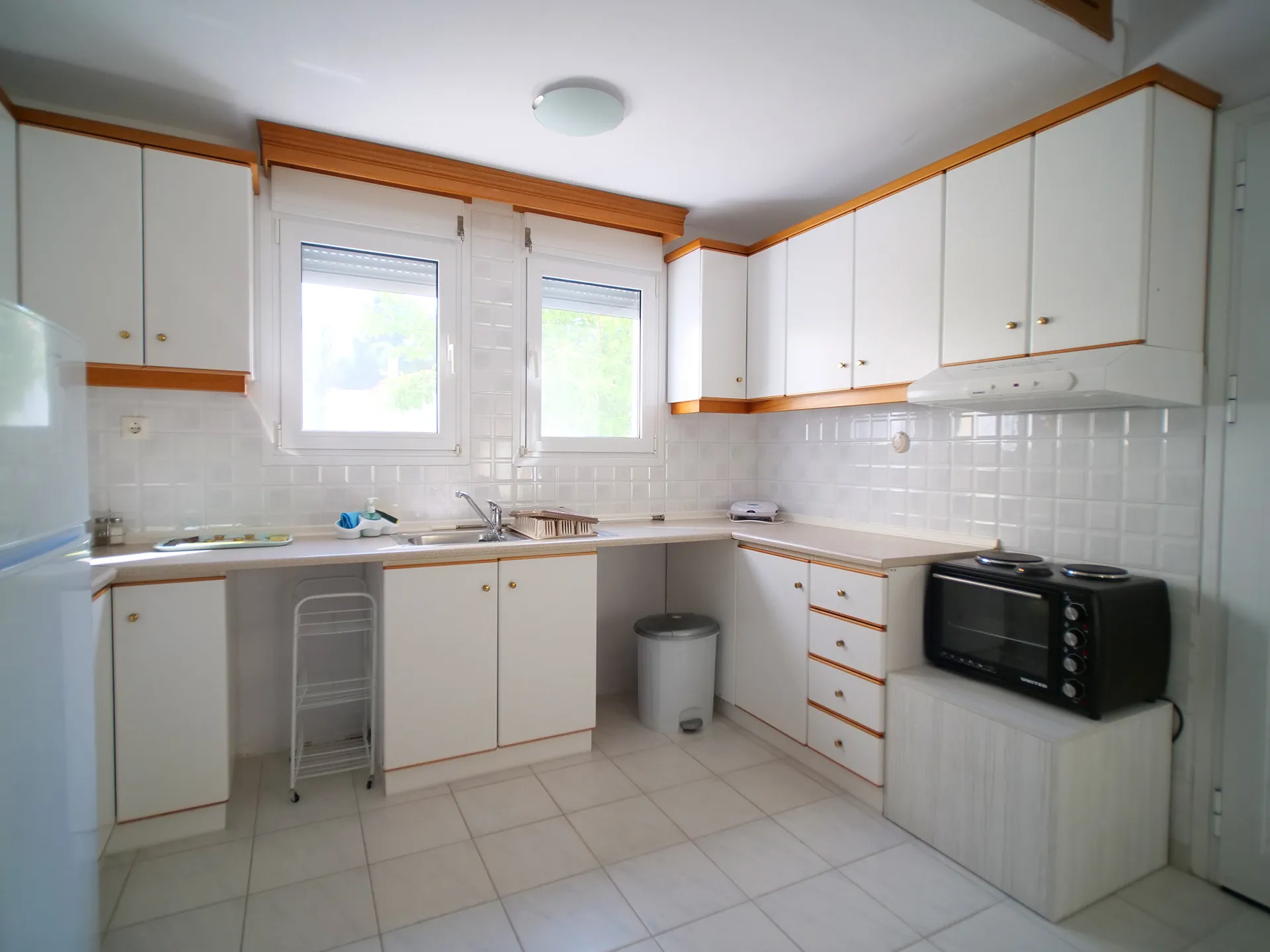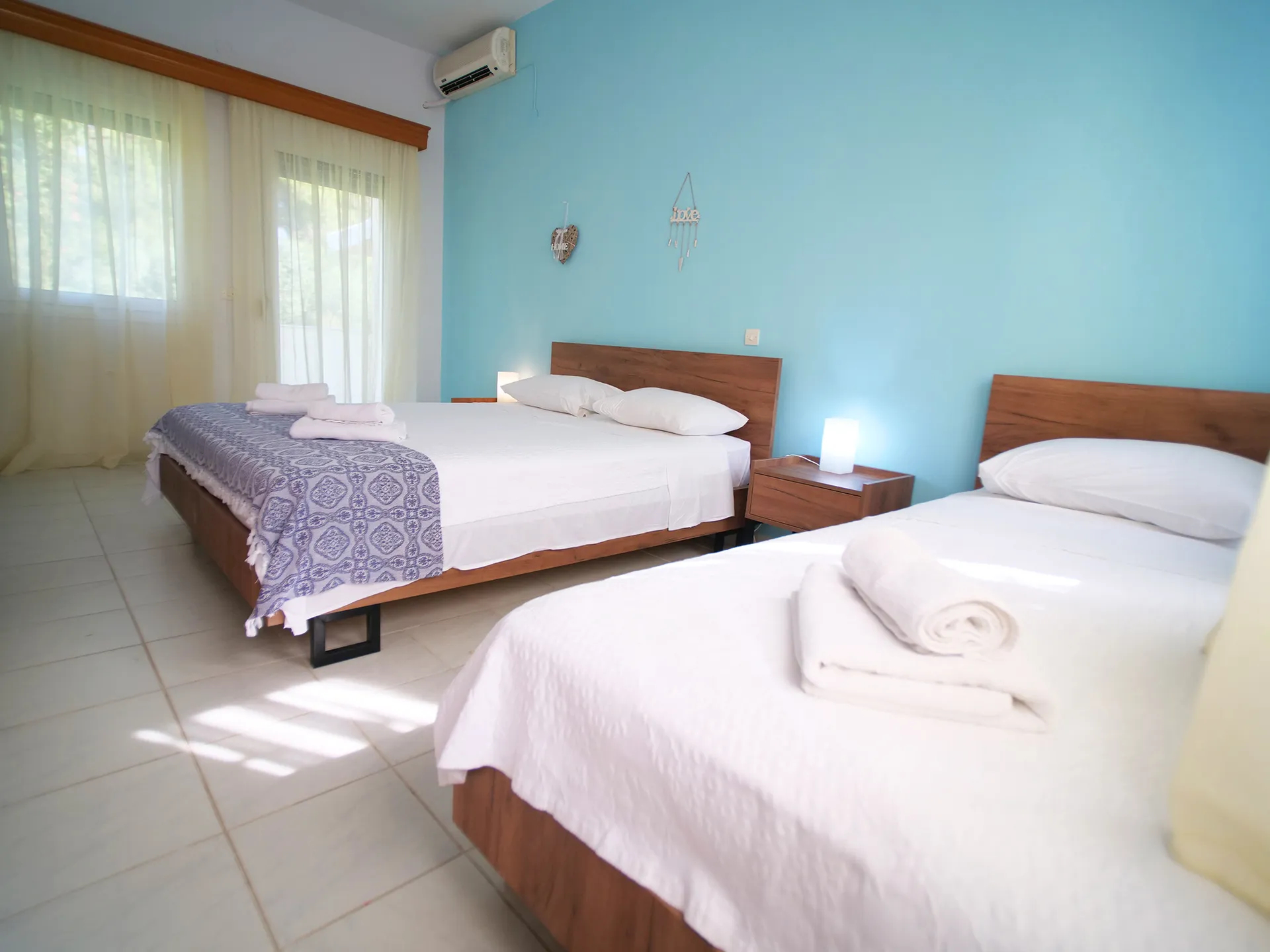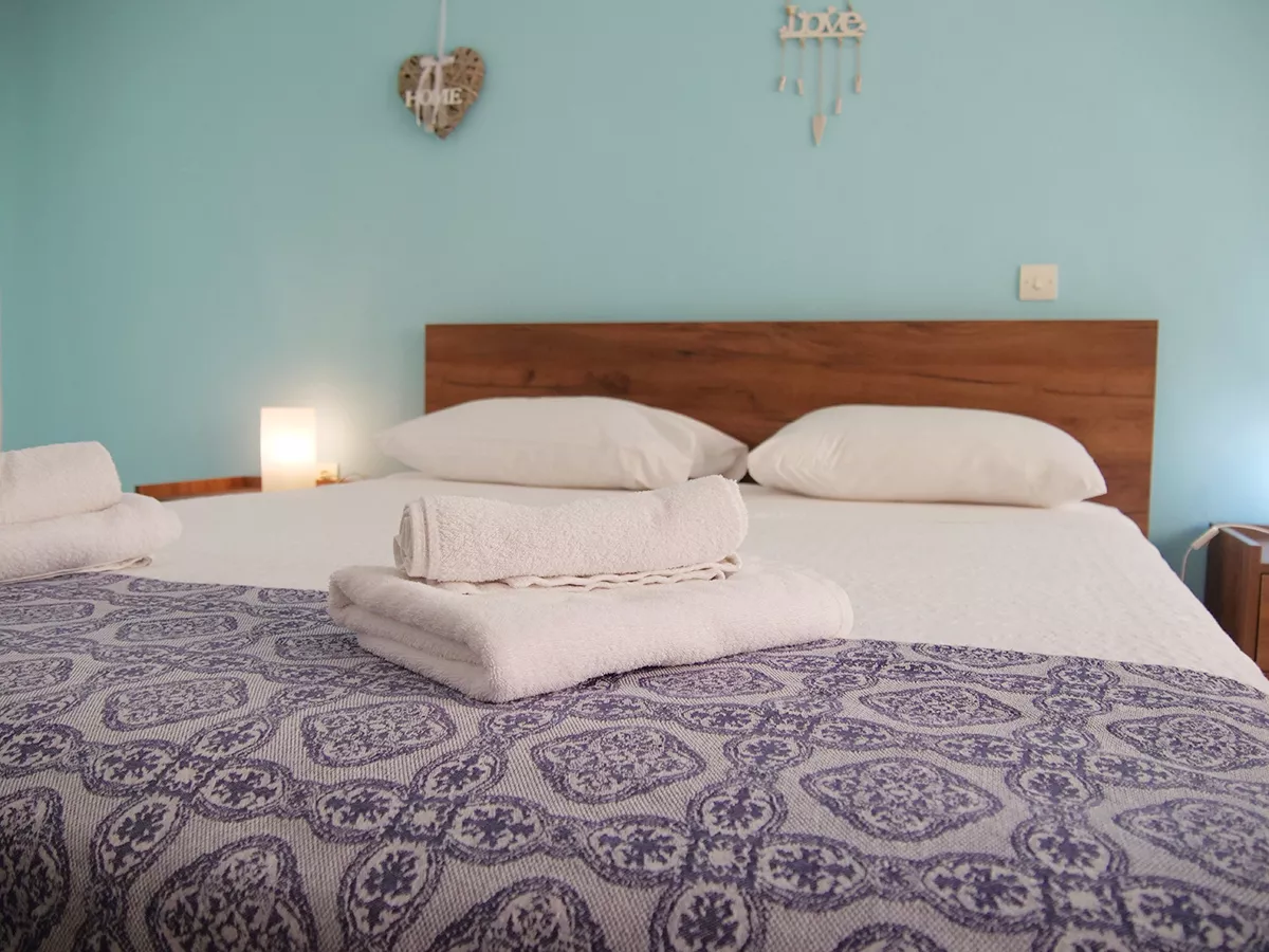 Udobna kuća za odmor površine 140 m² na 3 sprata sa tri odvojene spavaće sobe, tri kupatila, dnevnim boravkom, potpuno opremljenom kuhinjom i 2 privatne terase. Sa maksimalnim kapacitetom od 10 osoba, udobno može da smesti 9 odraslih ili 2-3 porodice: 1. spavaća soba sa 1 bračnim i 2 jednokrevetna kreveta, 2. spavaća soba sa 1 bračnim i 1 jednokrevetnim krevetom i 3. spavaća soba sa 1 bračnim krevetom (sa mogućnošću dodavanja sklopivog kreveta 0,90*1,90m ili dečijeg krevetca po potrebi).