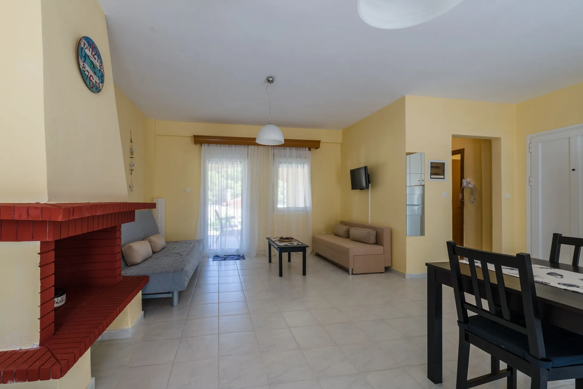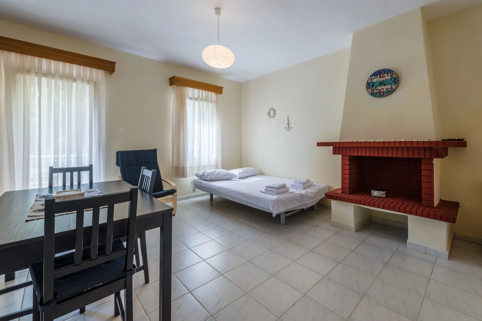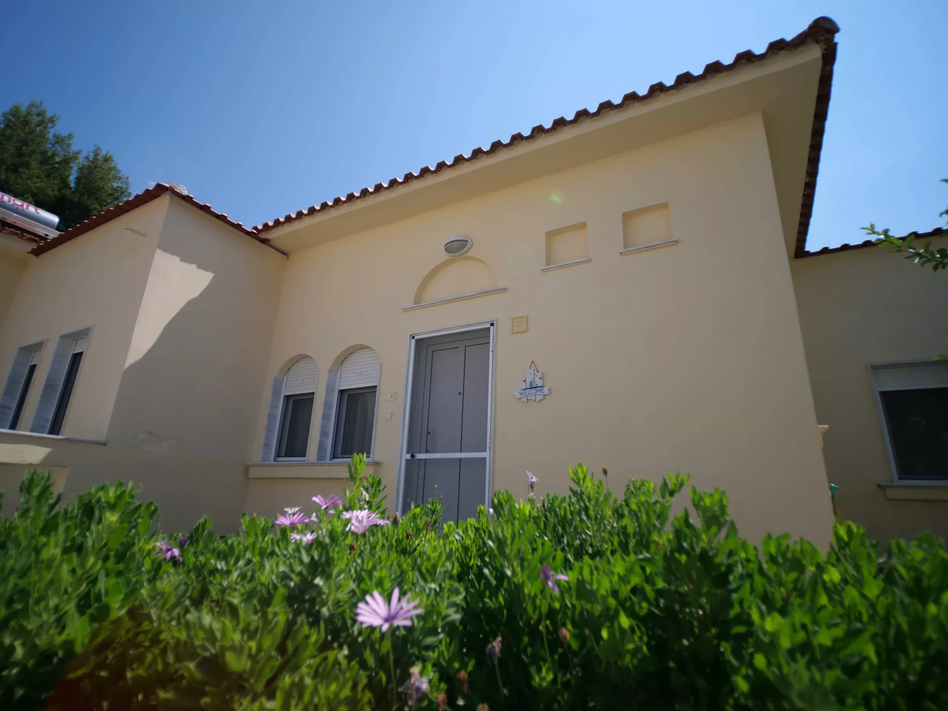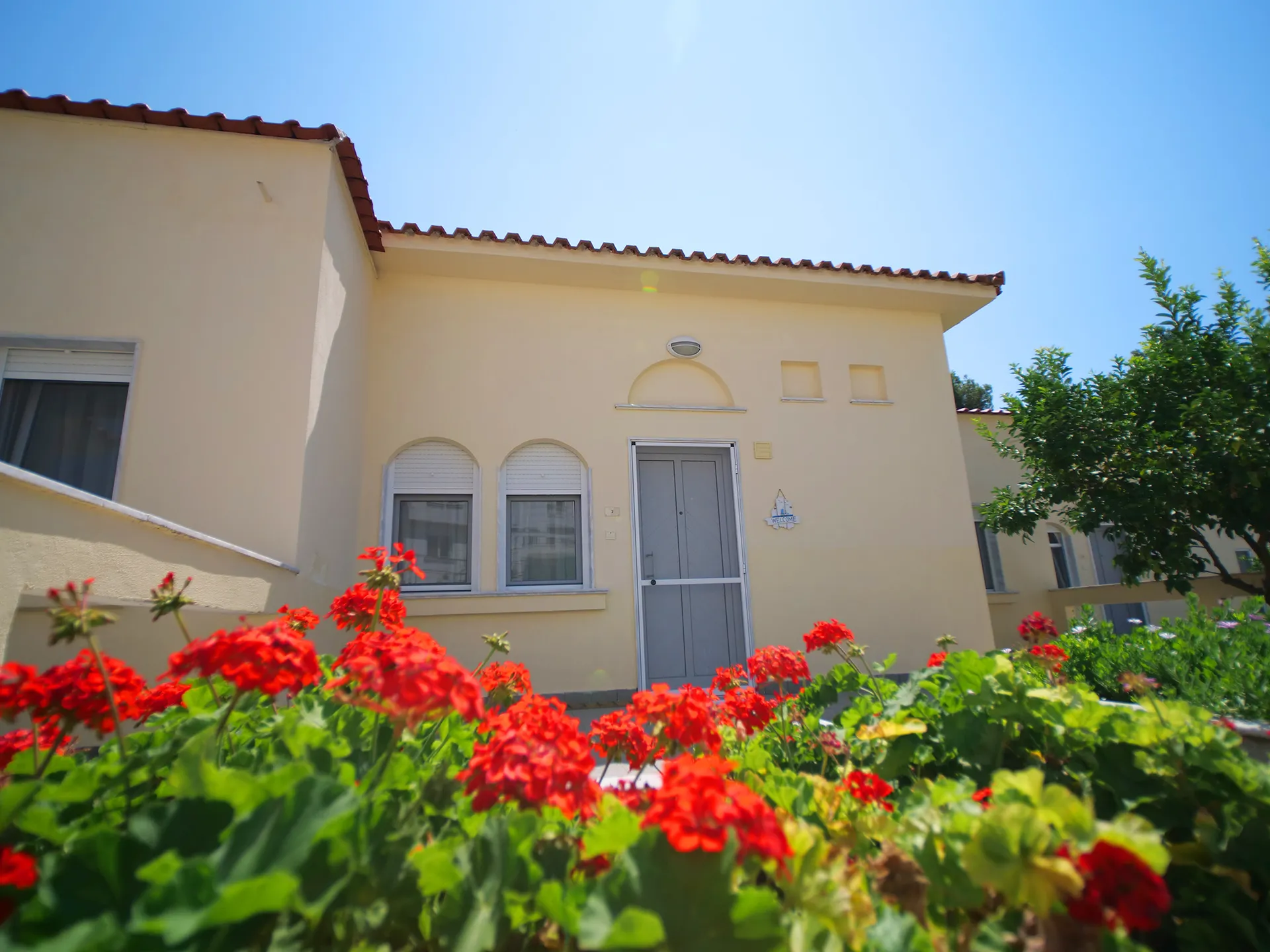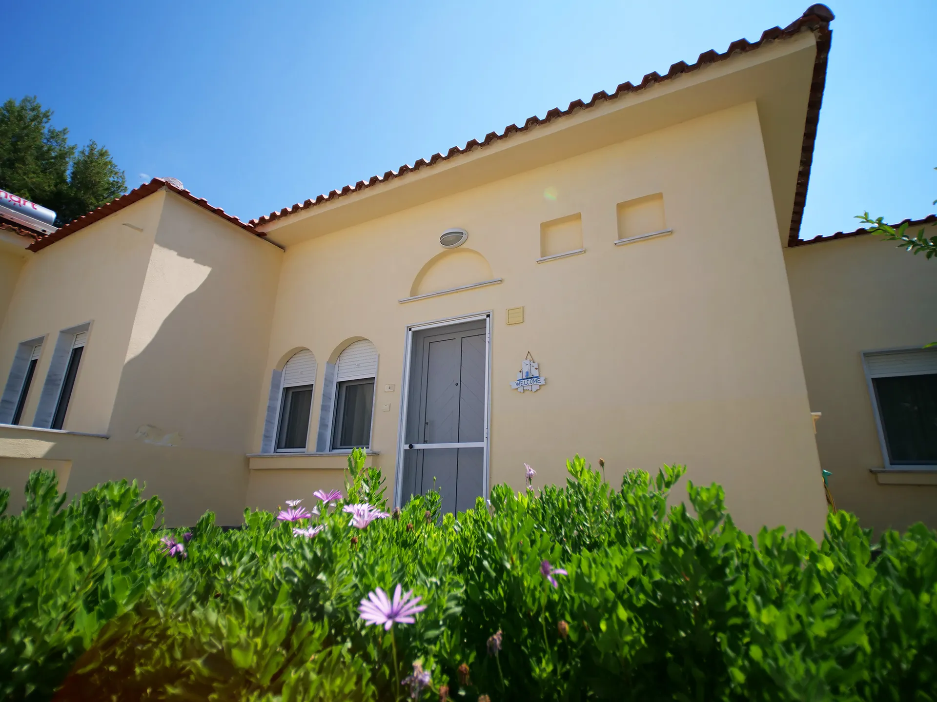 Udobna kuća za odmor površine 67 m² na jednom spratu sa odvojenom spavaćom sobom, kupatilom, dnevnim boravkom, potpuno opremljenom kuhinjom i terasom sa puno travnatog prostora za igru dece. Sa maksimalnim kapacitetom od 6 osoba, udobno može da smesti 5 odraslih ili 2-3 odrasle osobe i 2-3 dece: jedan bračni krevet u spavaćoj sobi i dve udobne sofe na razvlačenje u dnevnoj sobi. Postoji mogućnost dodavanja jednog dečijeg krevetca u spavaću sobu i/ili dečije stolice u prostoru za sedenje.