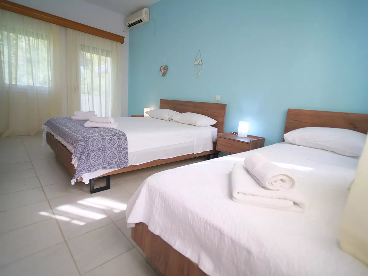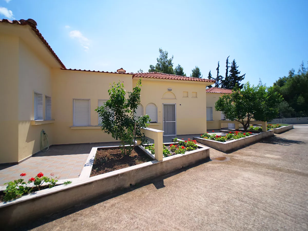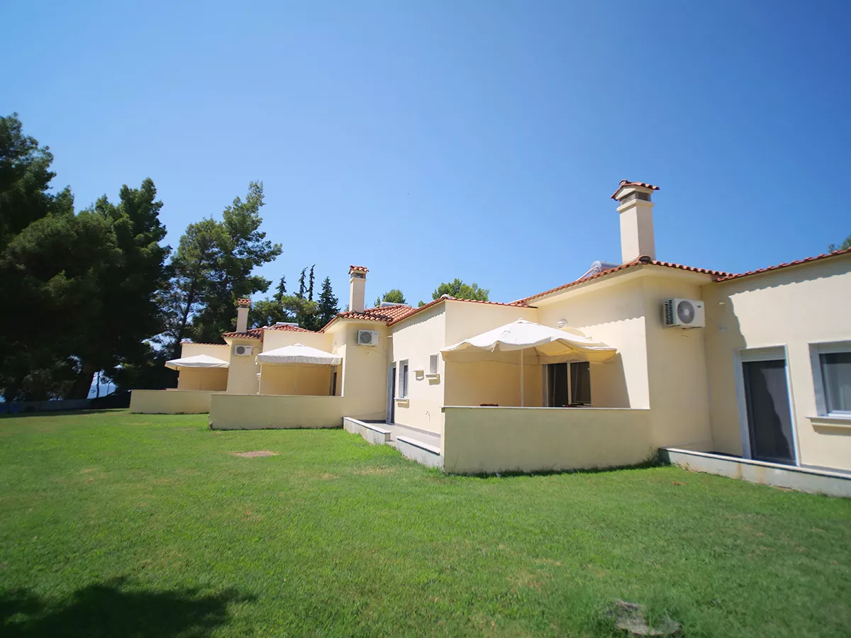 Sve kuće za odmor u Sithonia Lodge Chalkidiki su izuzetno udobne. Većina njih su jednospratni bungalovi i imaju odvojenu spavaću sobu, kupatilo, potpuno opremljenu kuhinju, dnevnu sobu sa jednom ili dve udobne sofe na razvlačenje i lepu terasu sa puno travnatog prostora ispred nje za igru dece. Postoji i trospratna kuća za odmor pod nazivom „ARTEMIS“ koja može da primi do 9 odraslih osoba. Plaža je udaljena samo 2 minuta hoda.