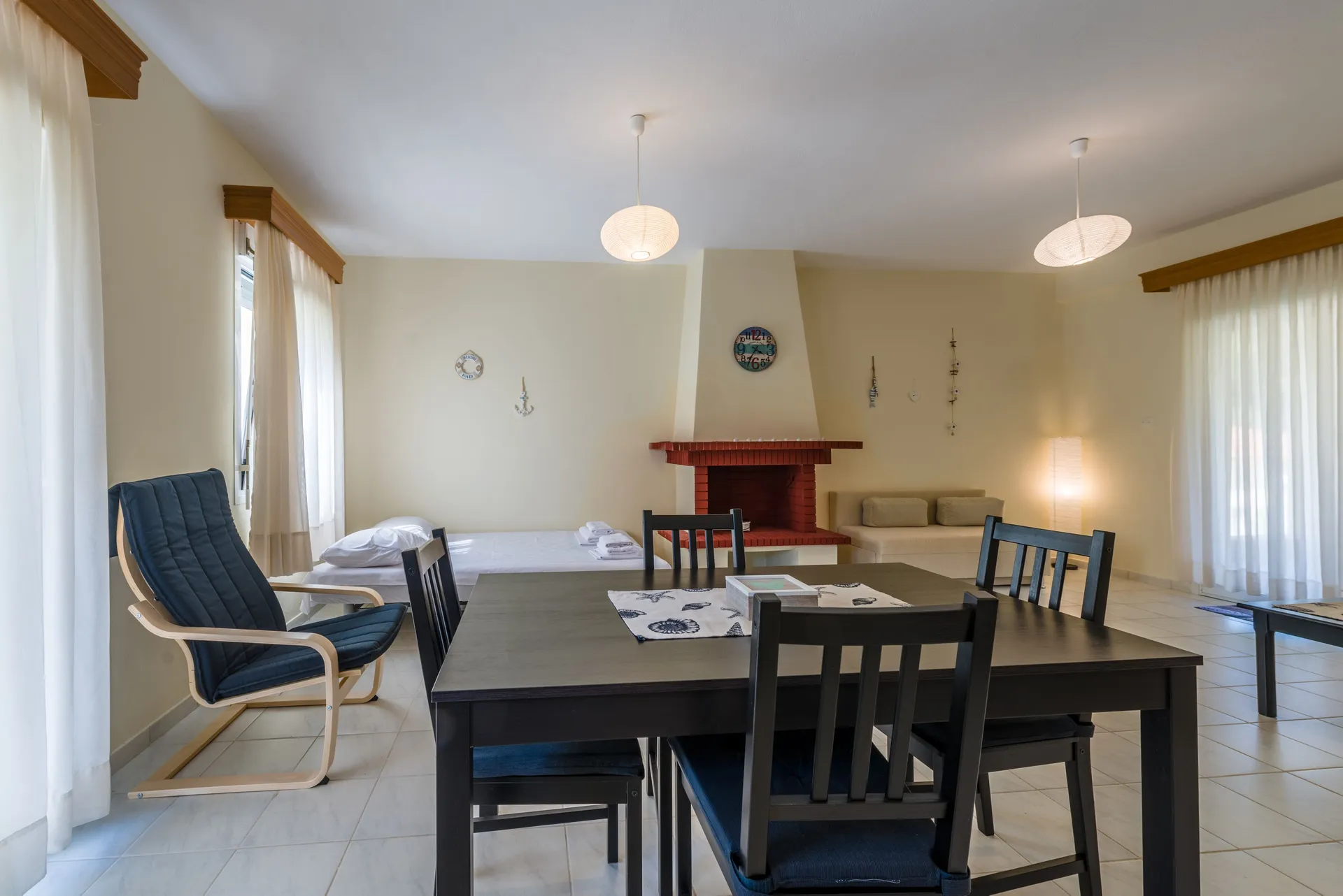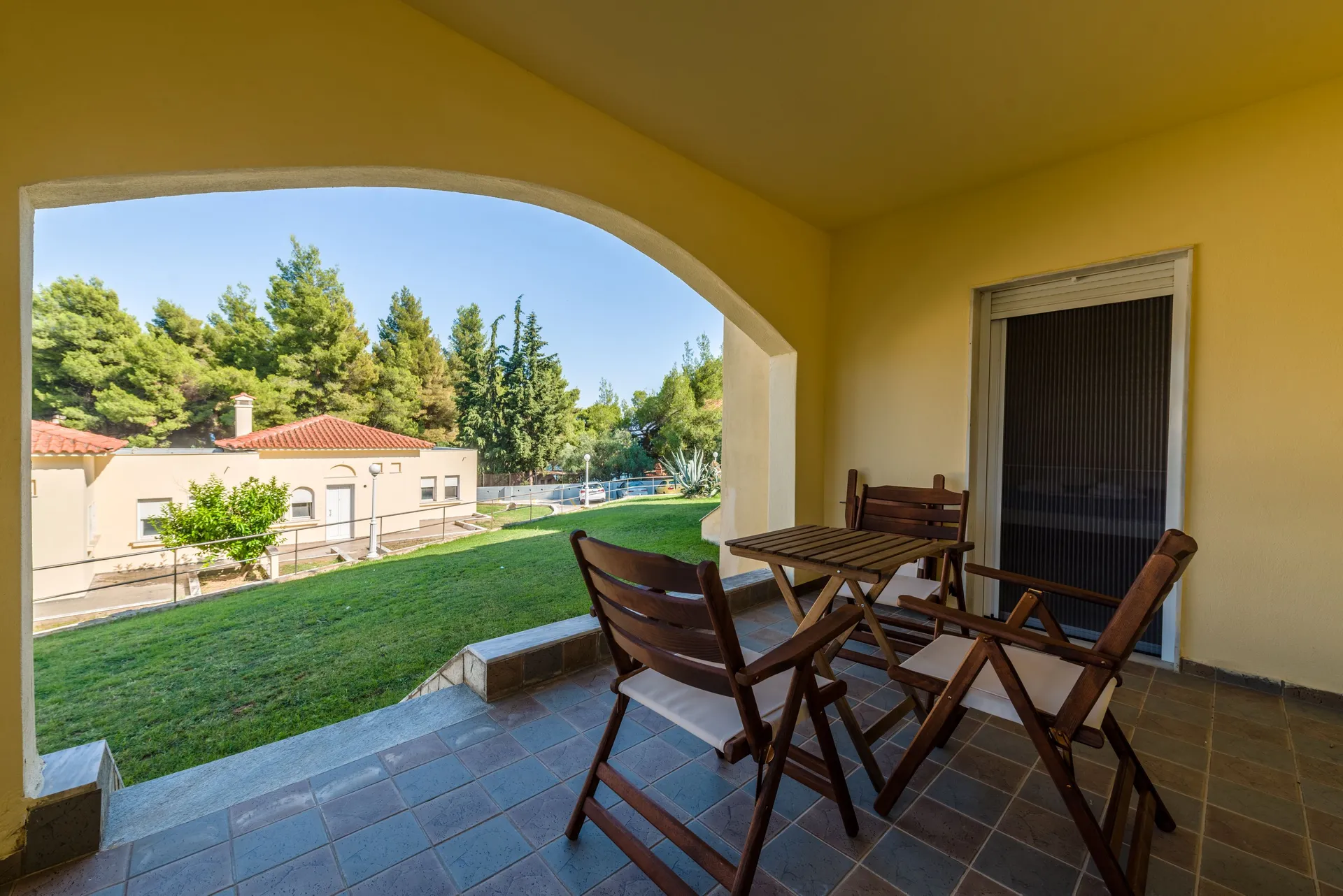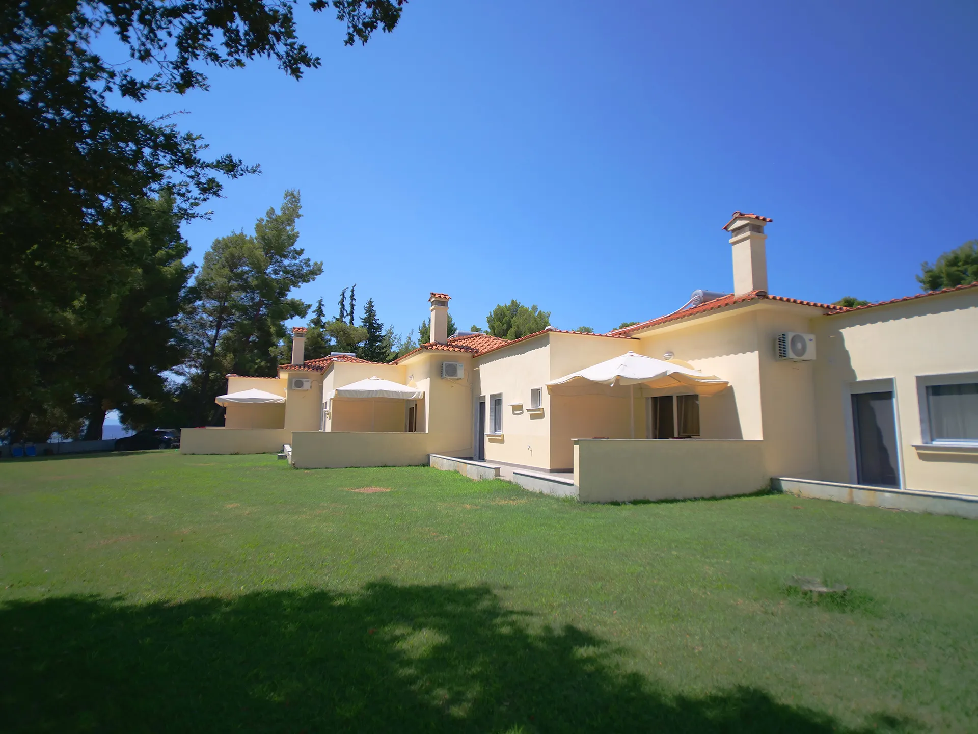 Sve kuće za odmor u Sithonia Lodge Chalkidiki su izuzetno udobne. Većina njih su jednospratni bungalovi i imaju odvojenu spavaću sobu, kupatilo, potpuno opremljenu kuhinju, dnevnu sobu sa jednom ili dve udobne sofe na razvlačenje i lepu terasu sa puno travnatog prostora ispred nje za igru dece. Postoji i trospratna kuća za odmor pod nazivom „ARTEMIS“ koja može da primi do 9 odraslih osoba. Plaža je udaljena samo 2 minuta hoda.