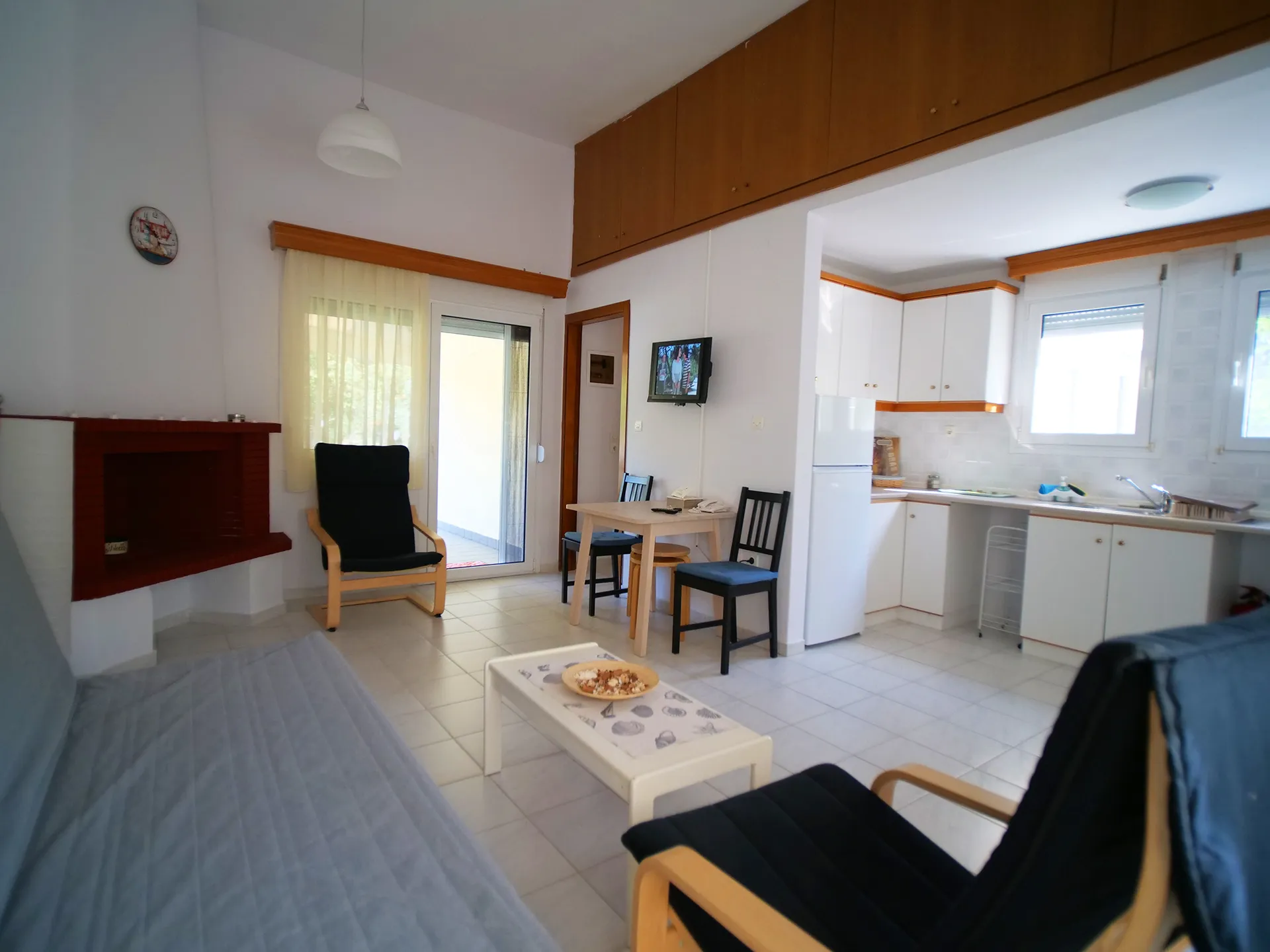 Udobna kuća za odmor površine 57 m² na jednom spratu sa odvojenom spavaćom sobom, kupatilom, potpuno opremljenom kuhinjom, dnevnim boravkom i lepom terasom sa puno travnatog prostora ispred nje za igru dece. Sa maksimalnim kapacitetom od 5 osoba, udobno može da smesti 4 odrasle osobe ili 2 odrasle osobe i 3 dece: jedan bračni i jedan jednokrevetni krevet u spavaćoj sobi i udobna sofa na razvlačenje u dnevnoj sobi. Postoji mogućnost dodavanja jednog dečijeg krevetca u spavaću sobu i/ili dečije stolice u prostoru za sedenje.