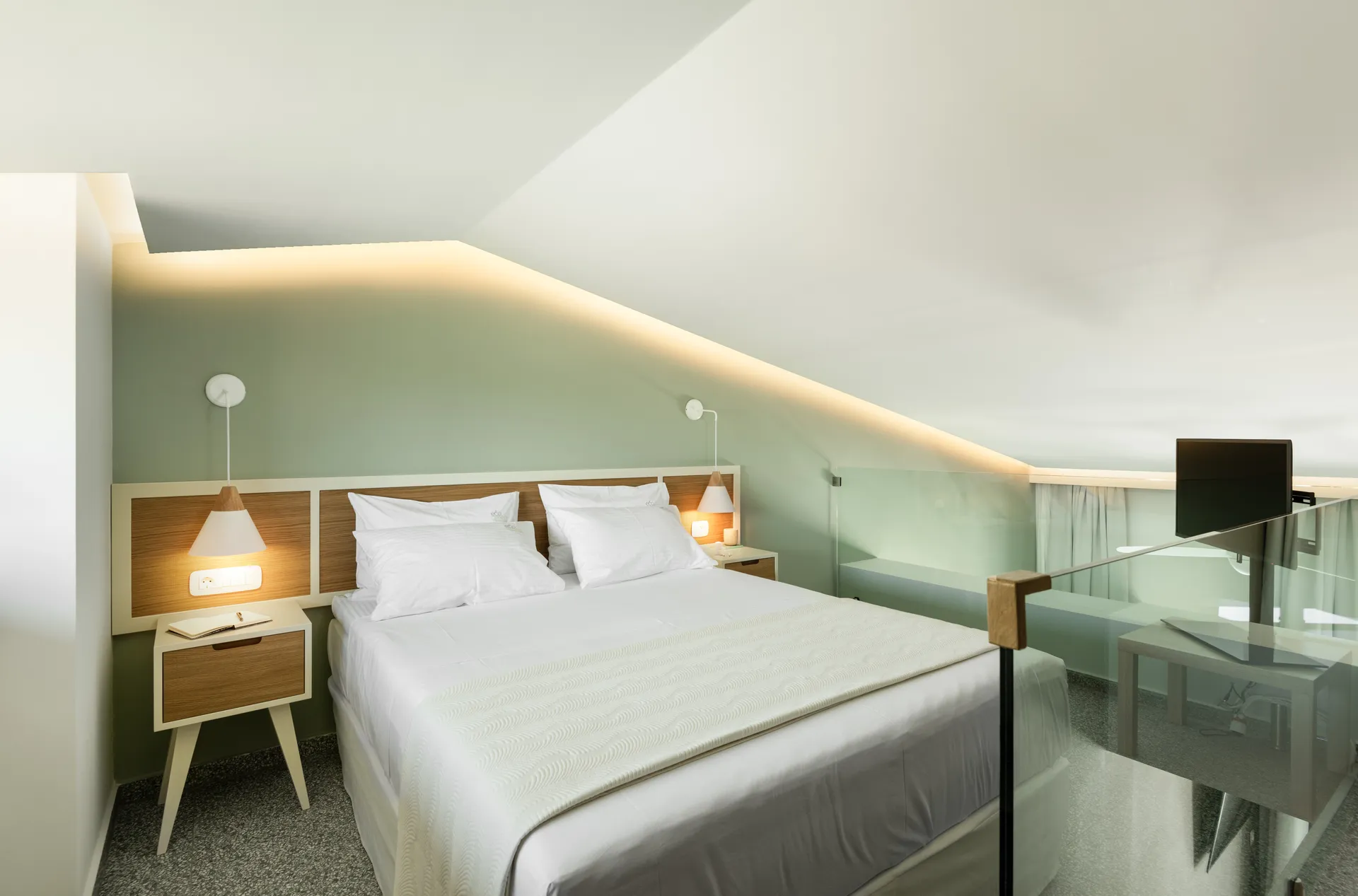 bračni krevet veličine „king-size“ sa udobnim dušecima veličine „Coco-Mat“ i dva tipa jastuka.