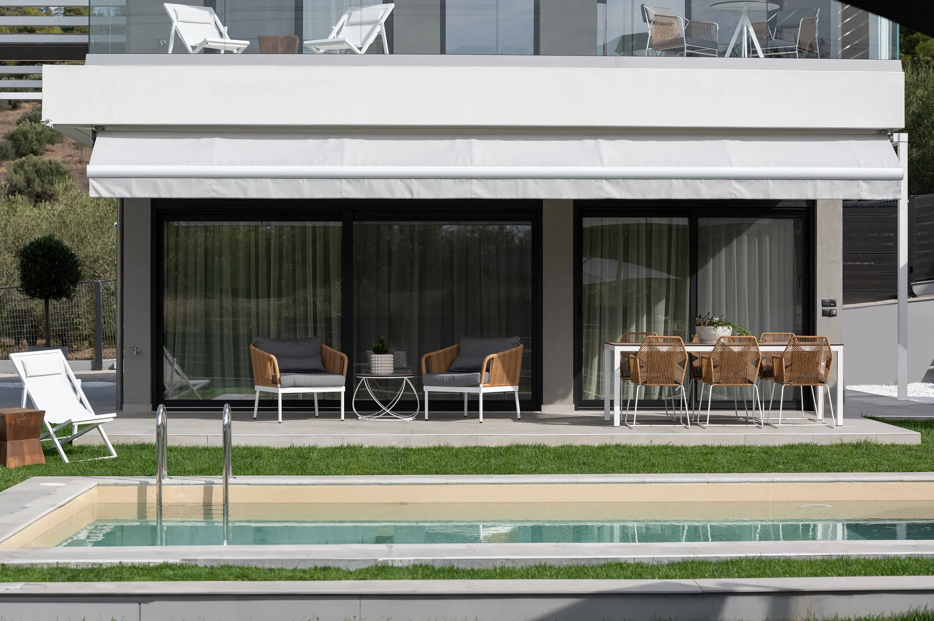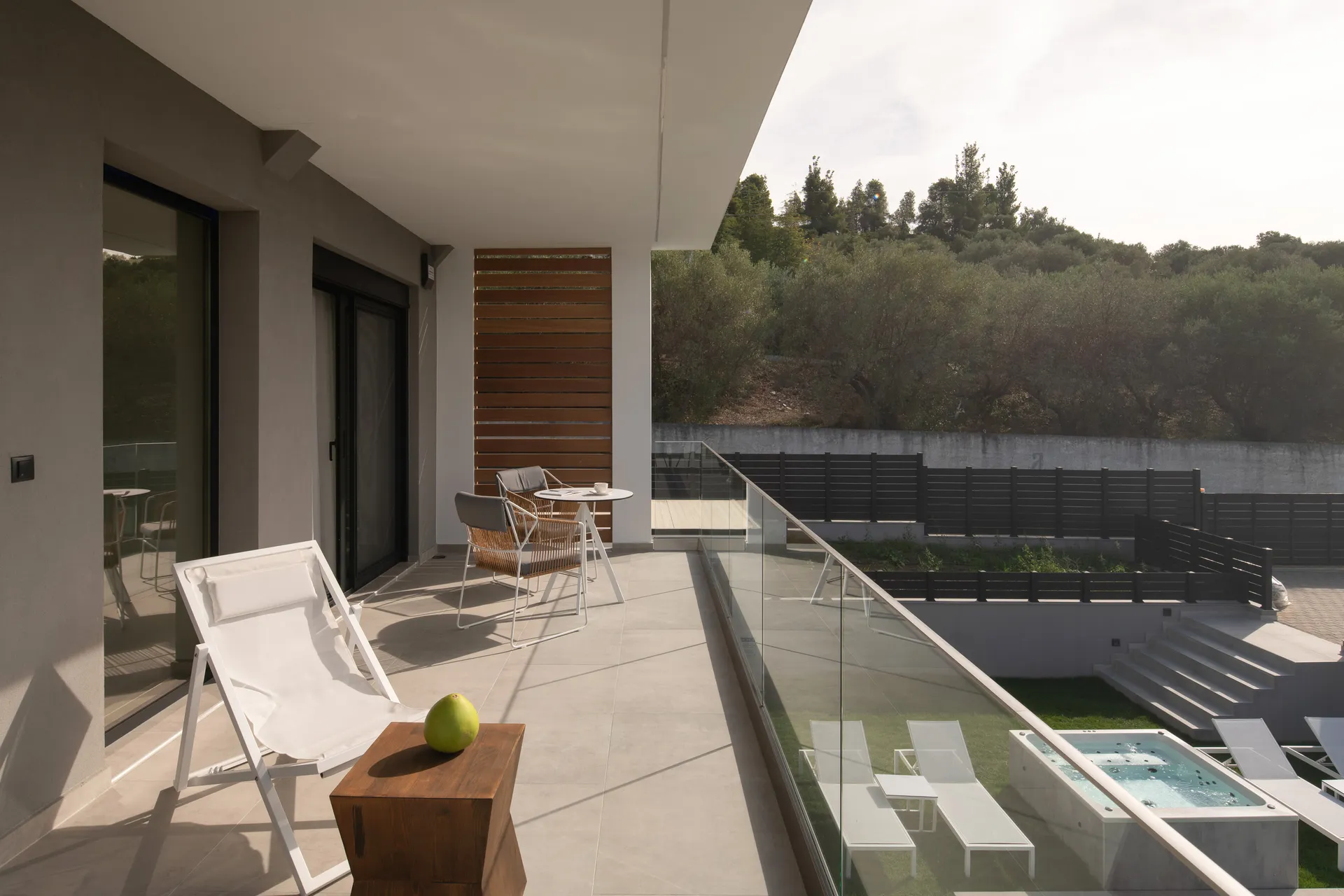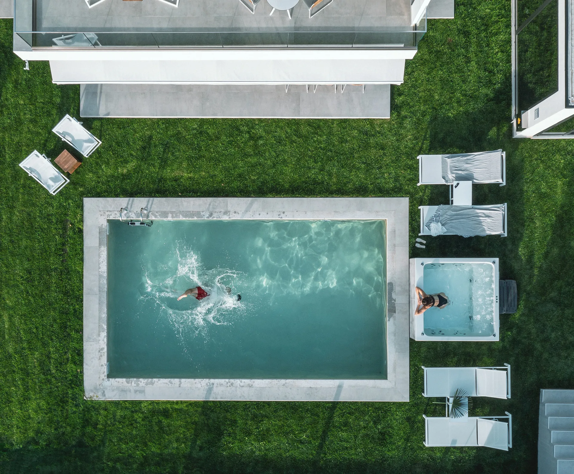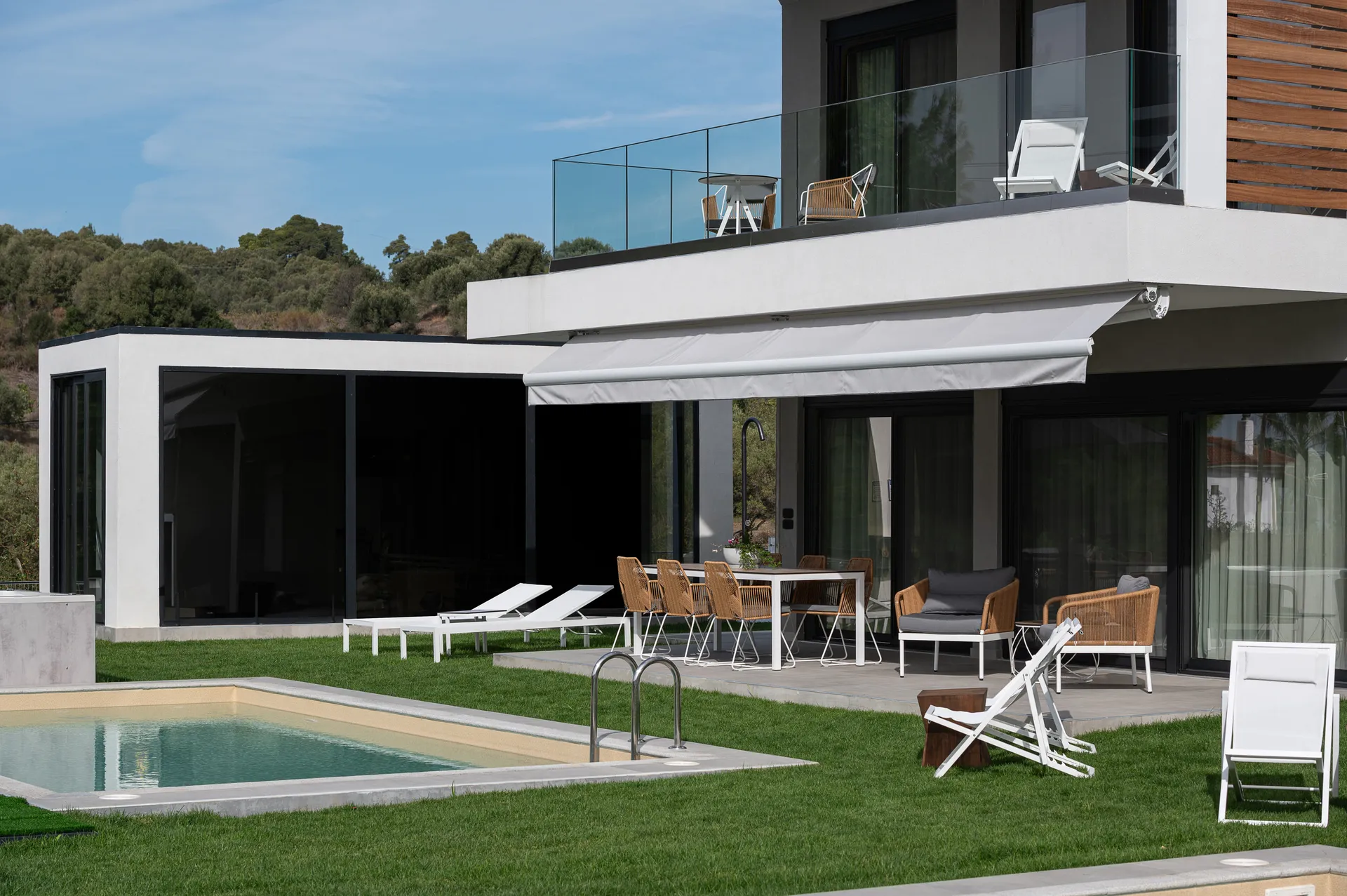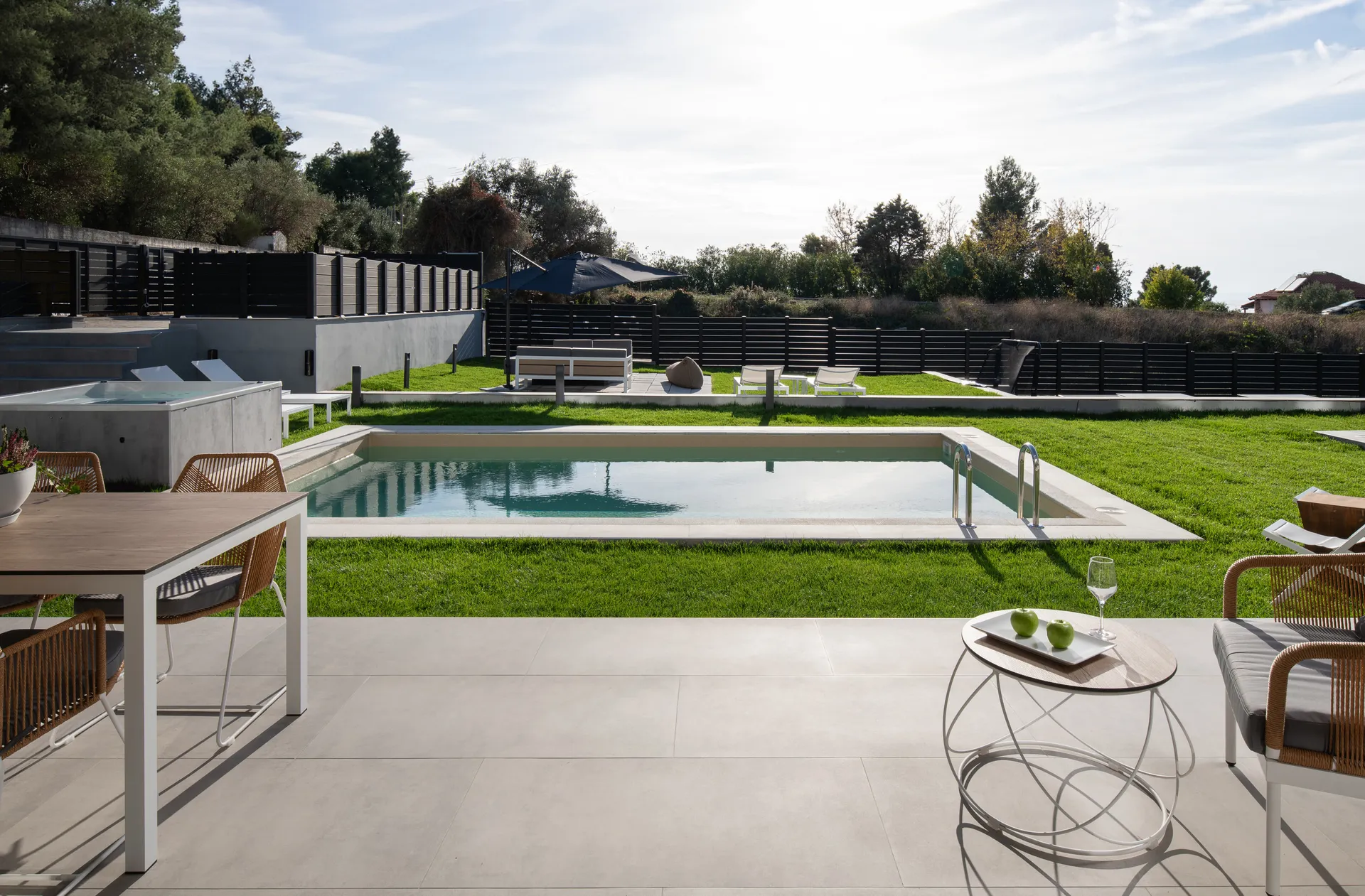 Besplatan bežični internet, privatni bazen sa umerenom temperaturom 28 m², UV, ležaljke, đakuzi za 5 osoba, privatna teretana 21 m² sa opremom za snagu i aerobik i TV sa ravnim ekranom, tuš, privatna bašta do 700 m² sa cvećem i travnjakom, dnevna soba sa baštenskim kaminom na bioetanol, besplatno mesto sa travnjakom za fudbal sa golom.