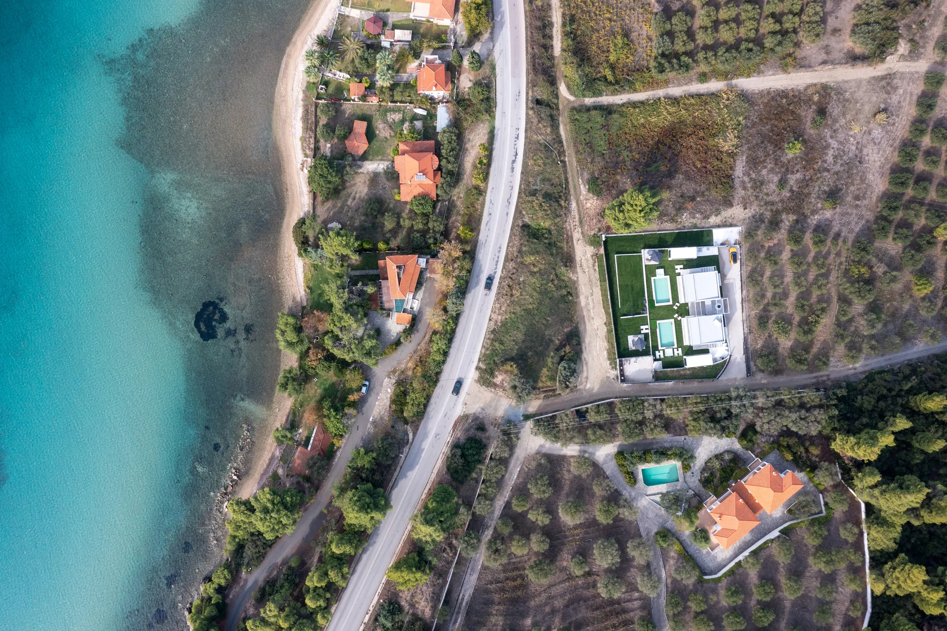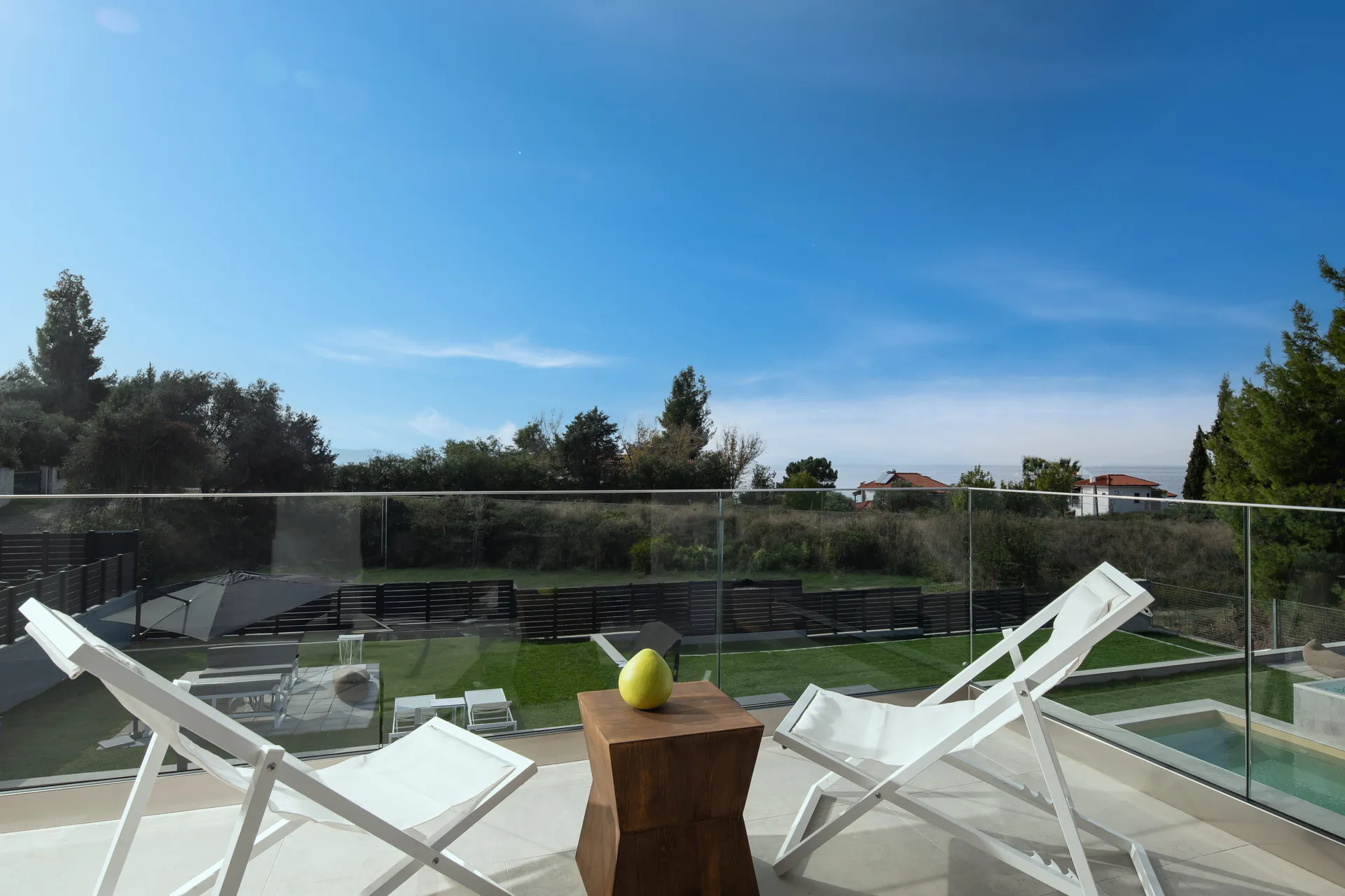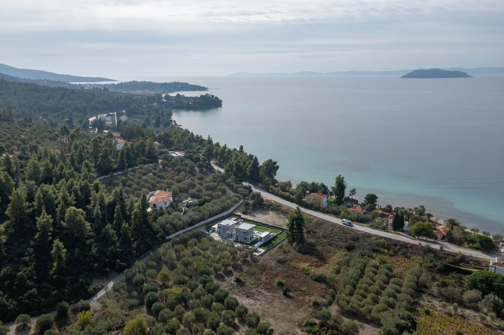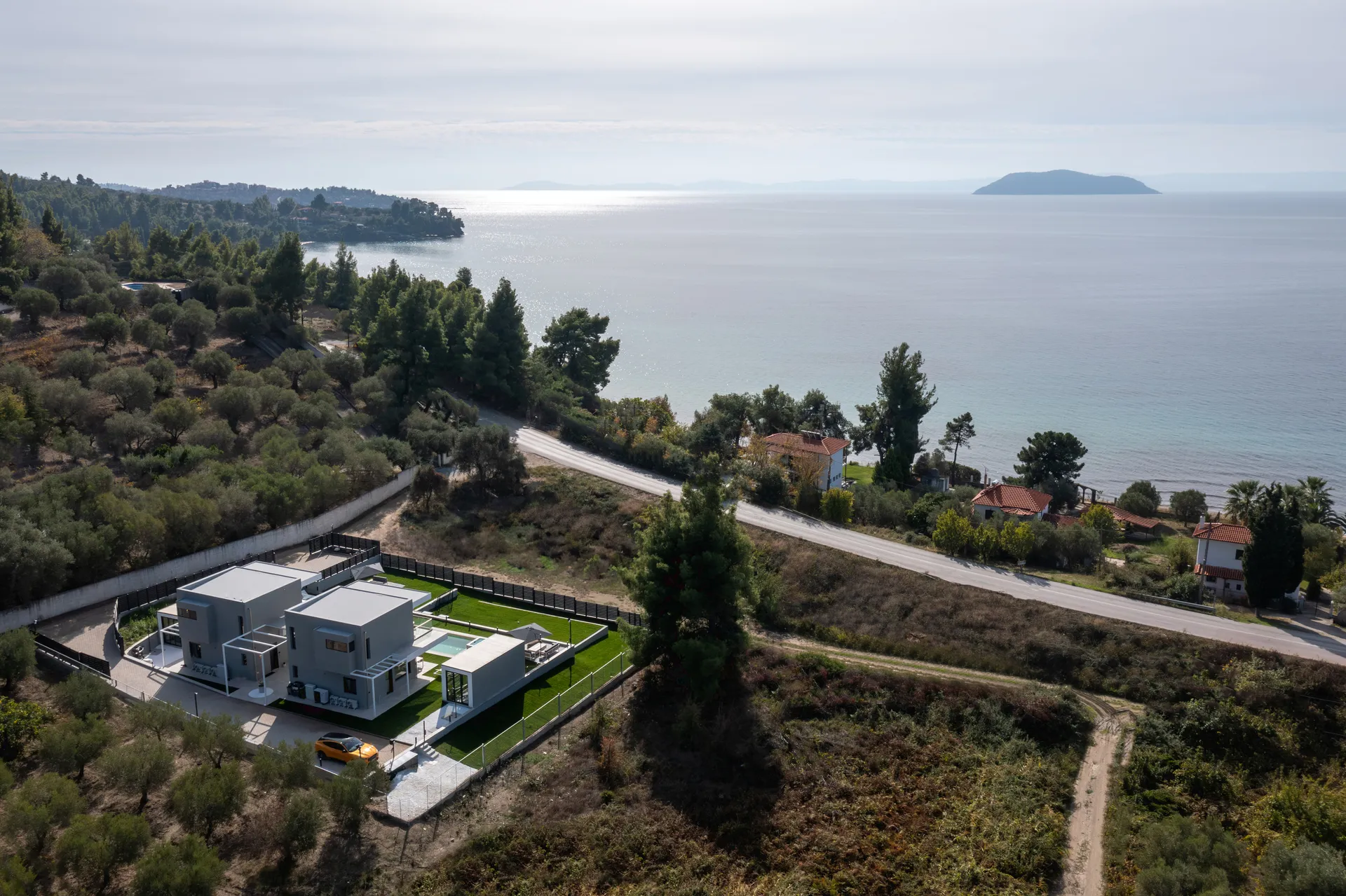 Lokacija: Estellar villas se nalaze na samo 50 metara od plaže sa tirkiznom vodom i 1400 metara severno od naselja Neos Marmaras, u drugom kraku Halkidikija, Sitonija, sa pogledom na more. Udaljenost od aerodroma Makedonija SKG Solun 105 km (1 sat + 20 min).