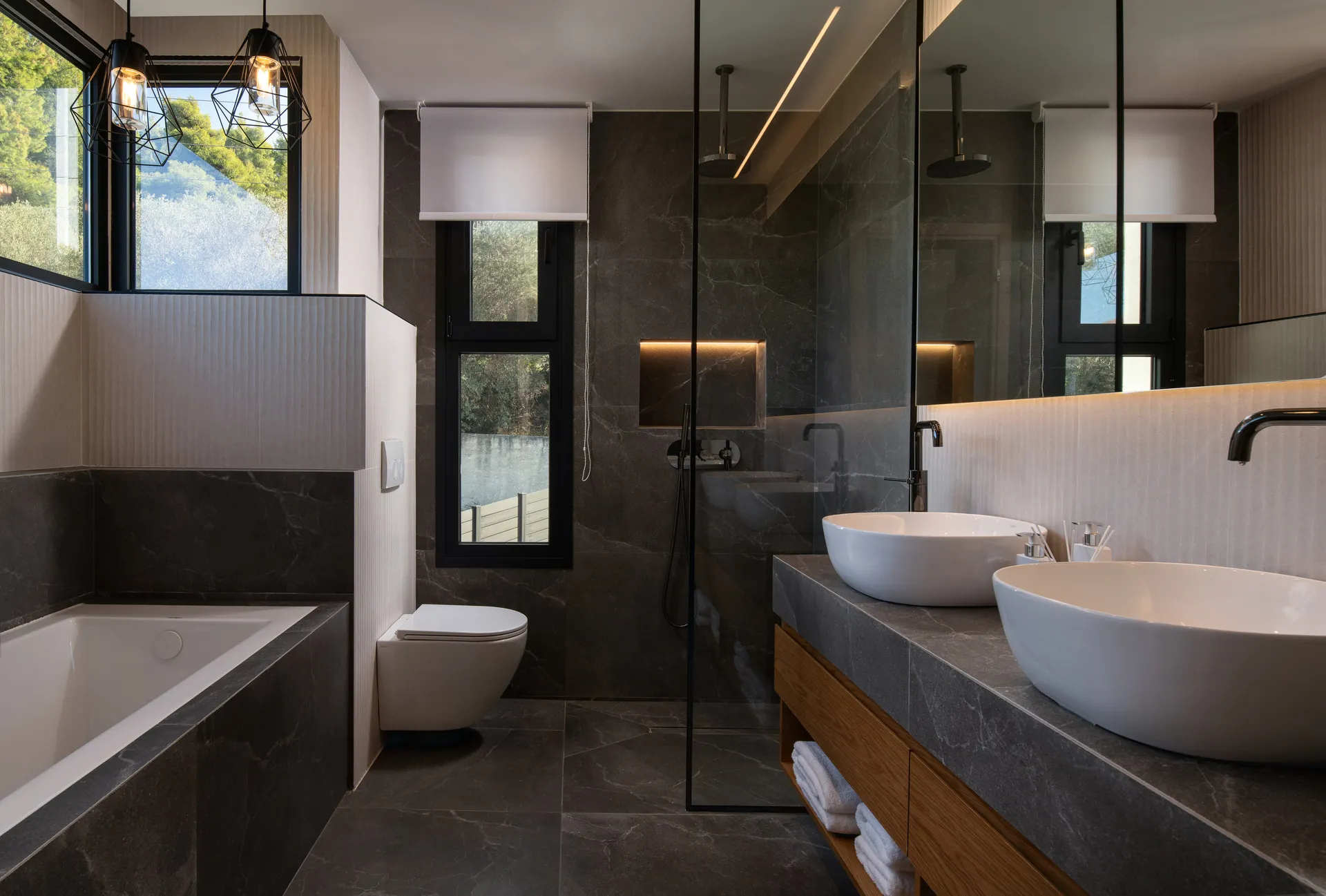 Kada, grejanje, fen za kosu, WC, pogled na planine kroz prozore.